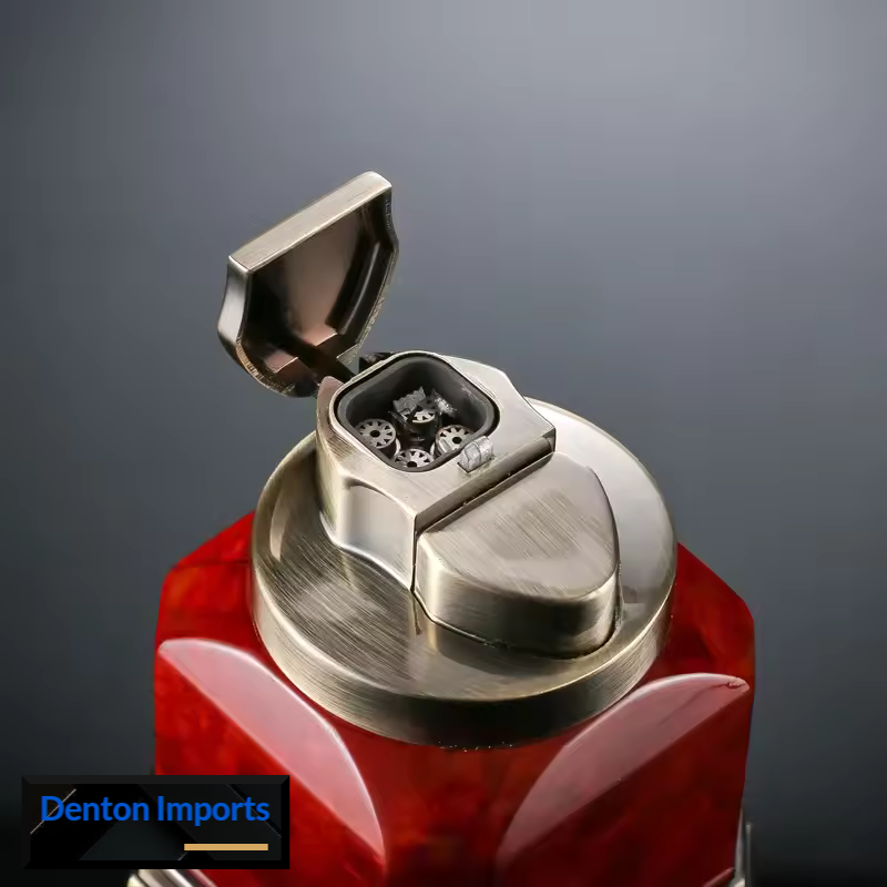 Really nice brass and redwood finish, table lighter. Four jet butane flame. Includes gift box as shown. Free shipping.