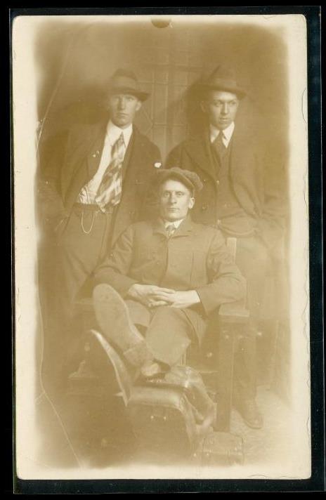 Vintage Photo Postcard Hanover Street Boston Massachusetts Young Men Fedora Hats - all dressed up looking like 1920s era gangsters.