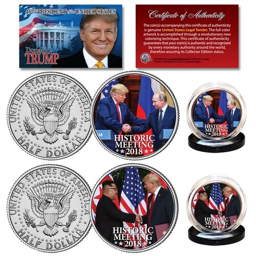 This is the JOHN McCAIN True American Hero collectible coin. Here is your chance to own a beautifully colorized JFK Kennedy Half Dollar U.S. Coin. This high-quality genuine Legal Tender U.S. coin has been colorized using a unique painstaking multicolor authentic process by the Merrick Mint. Colorizing coins involves the unique application of special inks directly to the surface of a coin that achieves a level of detail, color saturation, and durability that is #1 in the coin industry. The result is an everlasting colorized coin collectible of ultra-high quality. Each coin comes in a premium coin capsule with a Certificate of Authenticity to guarantee that your coin is authentic and recognized by every monetary authority around the world, assuring its Collector Edition status.