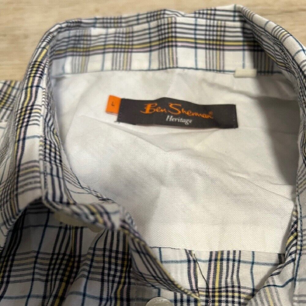 Keywords: Ben Sherman, plaid shirt, button up shirt, short sleeve shirt, casual shirt, men's shirt, heritage, checkered shirt, white shirt, black shirt, yellow shirt, large, L, menswear, fashion