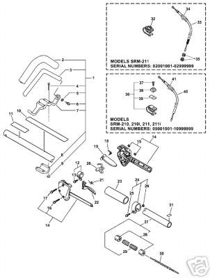 · SRM-211 S/N: 02001001 - 02999999-- Handle, Stop Switch, Throttle Cable, Driveshaft