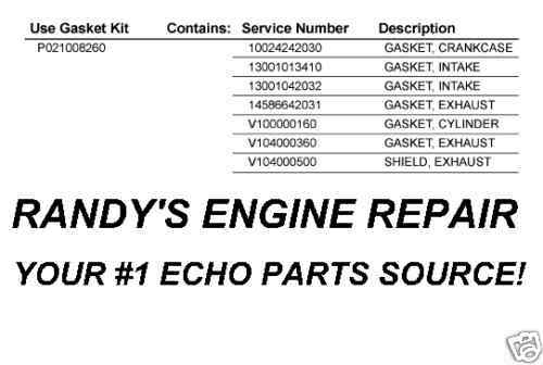 ENGINE GASKET KIT ECHO SRM SHC PPF P021008260 MODEL LISted