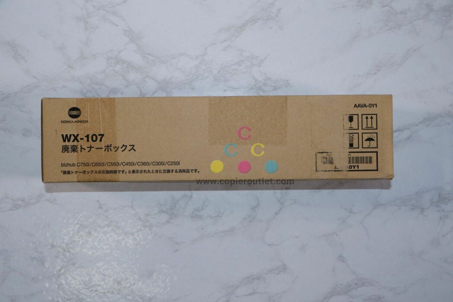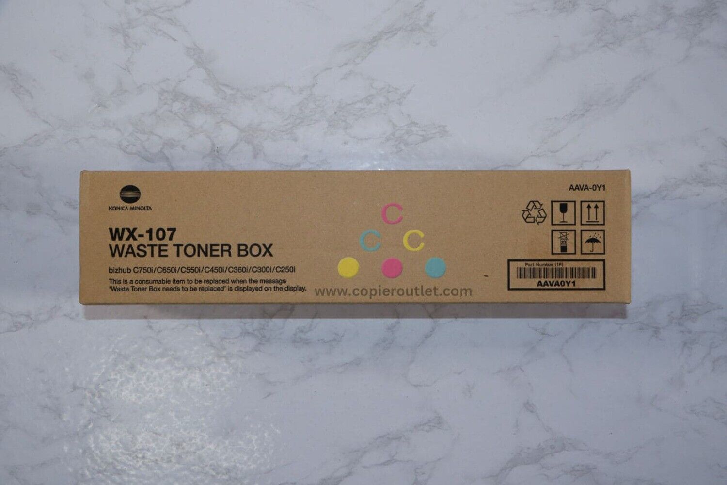 New OEM Konica Minolta Waste Toner Box WX-107 For BizHub C750i, C650i, C550i, C450i, C360i, C300i, C250i New !! SAME DAY SHIPPING!!! For faster shipping service, please send us a message or contact us. Copier Clearance Center Copier Clearance Center was established in 1993. We buy and sell both domestically and internationally and have wide assortment of used copiers, fax machines and printers of all brands, All of our copiers are in house and available for your inspection. They all have been tested and rated for functions, cosmetics and overall appearance. We also sell genuine accessories of all popular brands, Our accessories include toners, imaging units, developers and copier parts such as fax board, fixing unit, fuser unit, roller, cleaning brush, drum blades etc. For more detailed information on our current inventory of Copiers and Accessories all potential buyers or their representatives are welcome to give us a call. We are more than happy to assist you with the pricing and guide you to find the copiers you wish to buy. Best Regards, On-Line Sales Team Copier Clearance Center Business Hours (Pacific Time): Monday-Friday: 8:30 am to 5:00 pm Copier Clearance Center Promo Video - YouTube Video will open in a new windowUsing the App? Paste link into a browser window: [isdntekvideo] All product and company names are trademarksTM or registered trademarks of their respective holders. Use of them does not imply any affiliation with or endorsement by them.