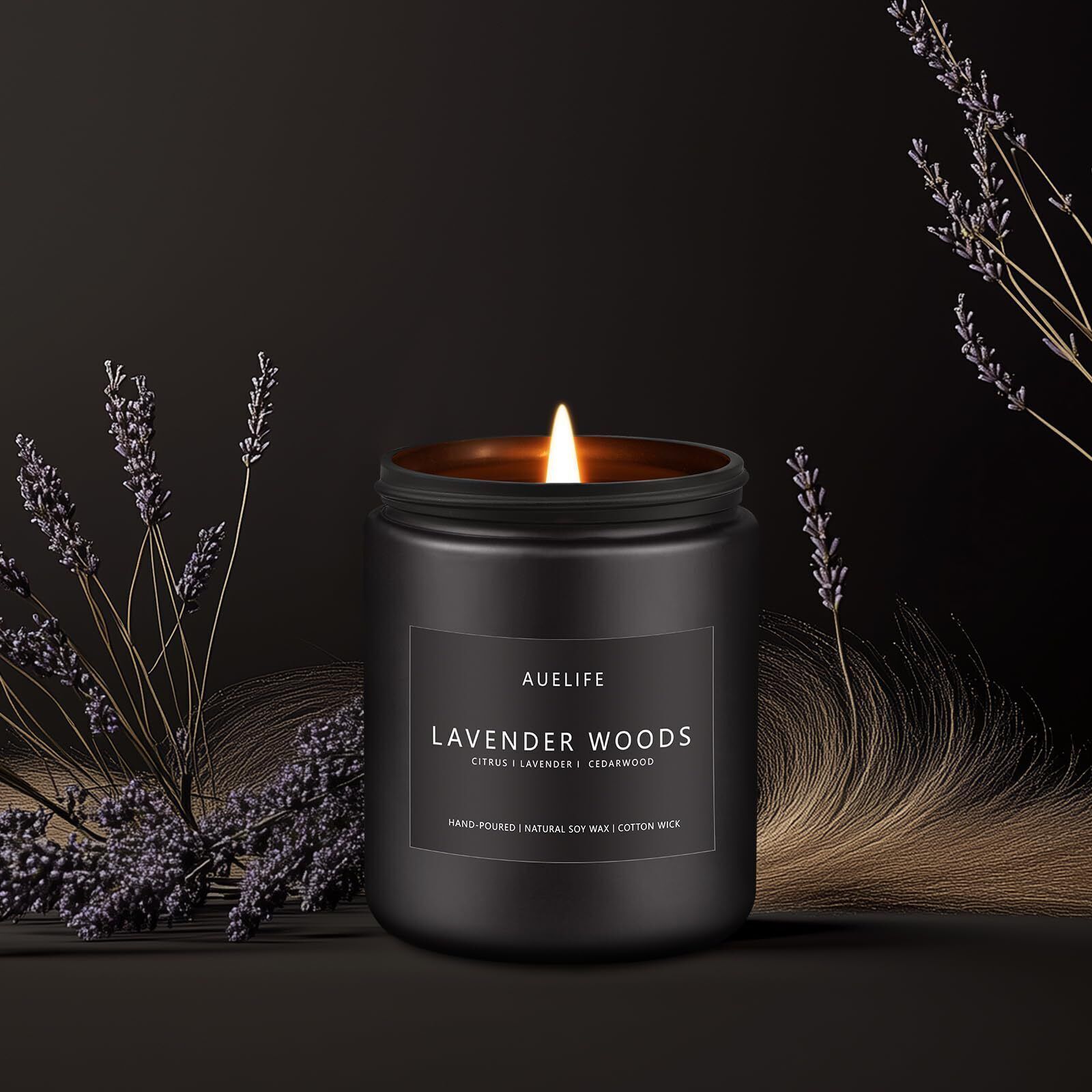 Scented Candles for Men | Lavender Wood Scented Candle - Candle for Men, Men Candles for Home Scented, Candle Gifts for Him/Friend, Aromatherapy Candle in Black Jar