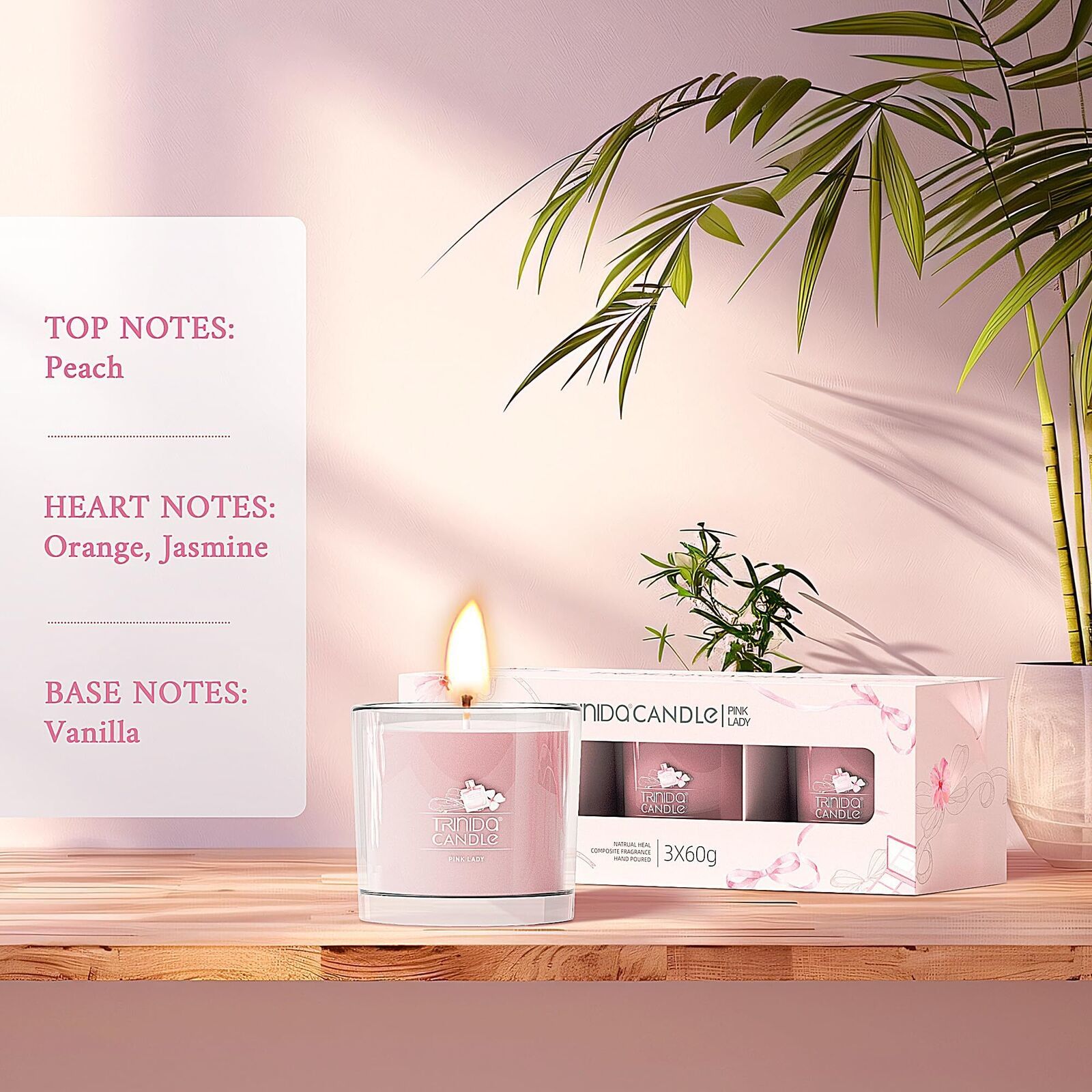 TRINIDa Candles for Women, 3 Scented Candles for Home Scented, 6.3Oz Pink Candle Set, Peach, Jasmine Vanilla Scented Soy Candles Gifts for Women (+5 Series Options)