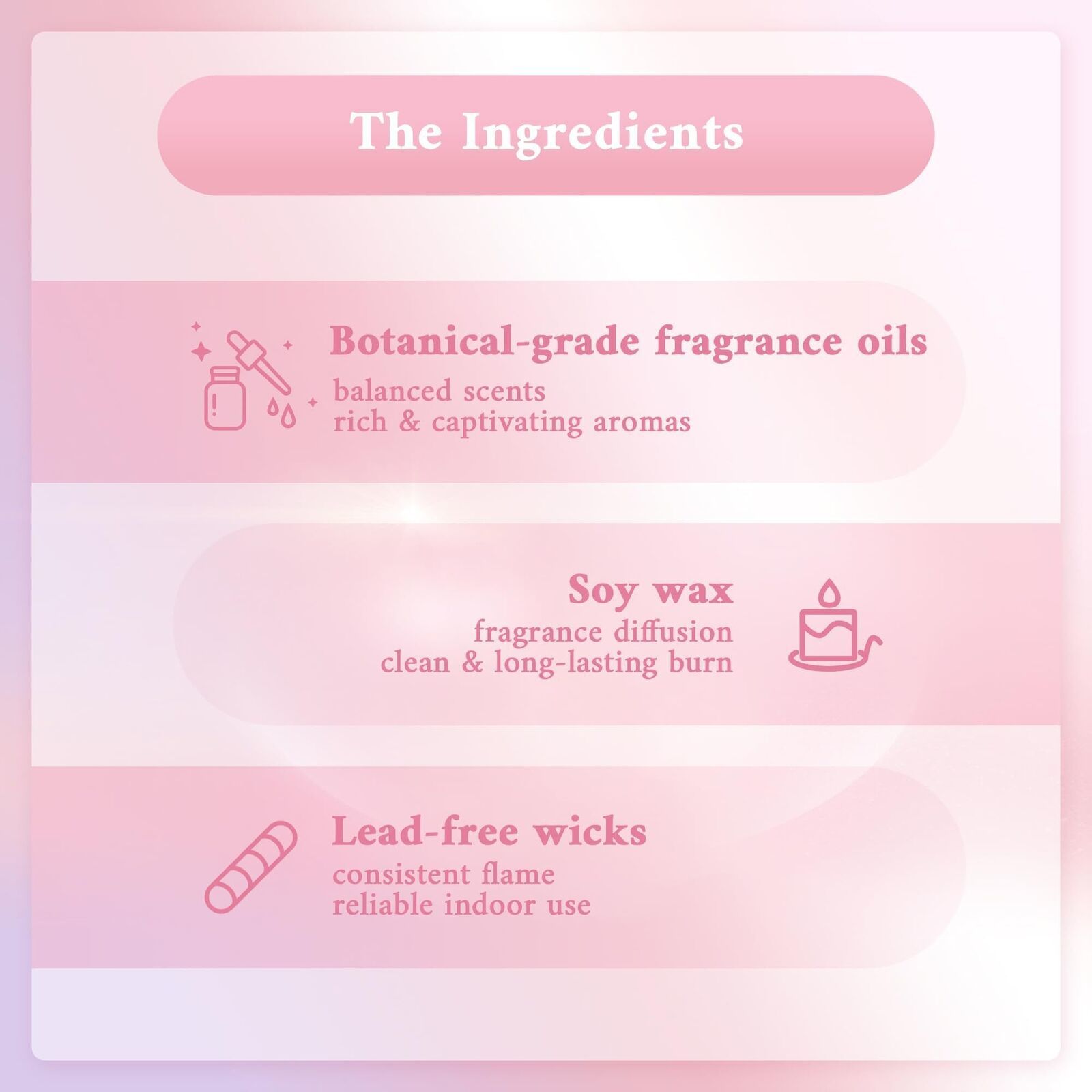 Color: Pink1Features: We start with premium organic wax, known for its clean burn and excellent scent throw. Light the Pink Lady candle, hosting an intimate garden party under twinkling fairy lights, where laughter mingles with the sweet aroma wafting through the air Top Notes: Walking through a sun-drenched orchard, where the air is filled with the luscious aroma of ripe peach. The first whiff of the Pink Lady candle captures that essence?sweet, juicy, and bursting with life. It?s like biting into a perfectly ripe peach on a warm summer day Heart Notes: As the initial sweetness unfolds, you?re greeted by a vibrant dance of orange and jasmine. Zesty brightness of freshly squeezed oranges mingles with the delicate allure of jasmine blossoms swaying in the breeze. This heart is alive with energy, evoking feelings of celebration and spontaneity Base Notes: Finally, the scent settles into a warm embrace of vanilla. Wrapping yourself in a soft cashmere blanket after an exhilarating day?comforting, rich, and utterly satisfying. This base note lingers like a sweet memory, inviting you to savor every moment TRINIDa candle is meticulously crafted with an artisanal touch. Infused with high-quality essential oils, each candle is hand-poured to make an exceptional experience. Every flicker tells a story of care and passion Package Dimensions: 6.7 x 2.4 x 2.4 inches