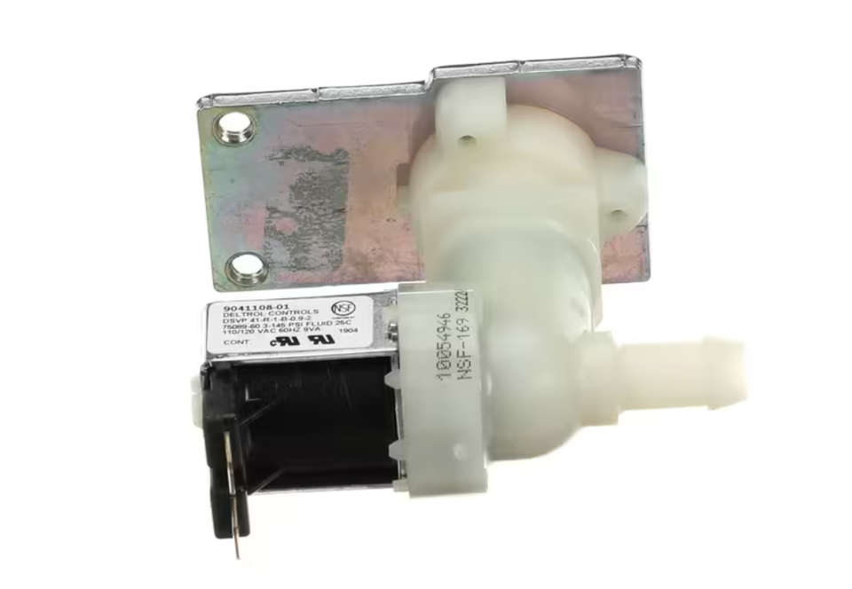 Keep your Ice O Matic ice machine running at peak efficiency with this Water Inlet Solenoid Valve. Designed for 110/120V operation at 60Hz, this OEM replacement part ensures precise water flow control for consistent ice production. Certified to NSF-169 standards, this valve is built for durability and long-term performance in commercial applications.