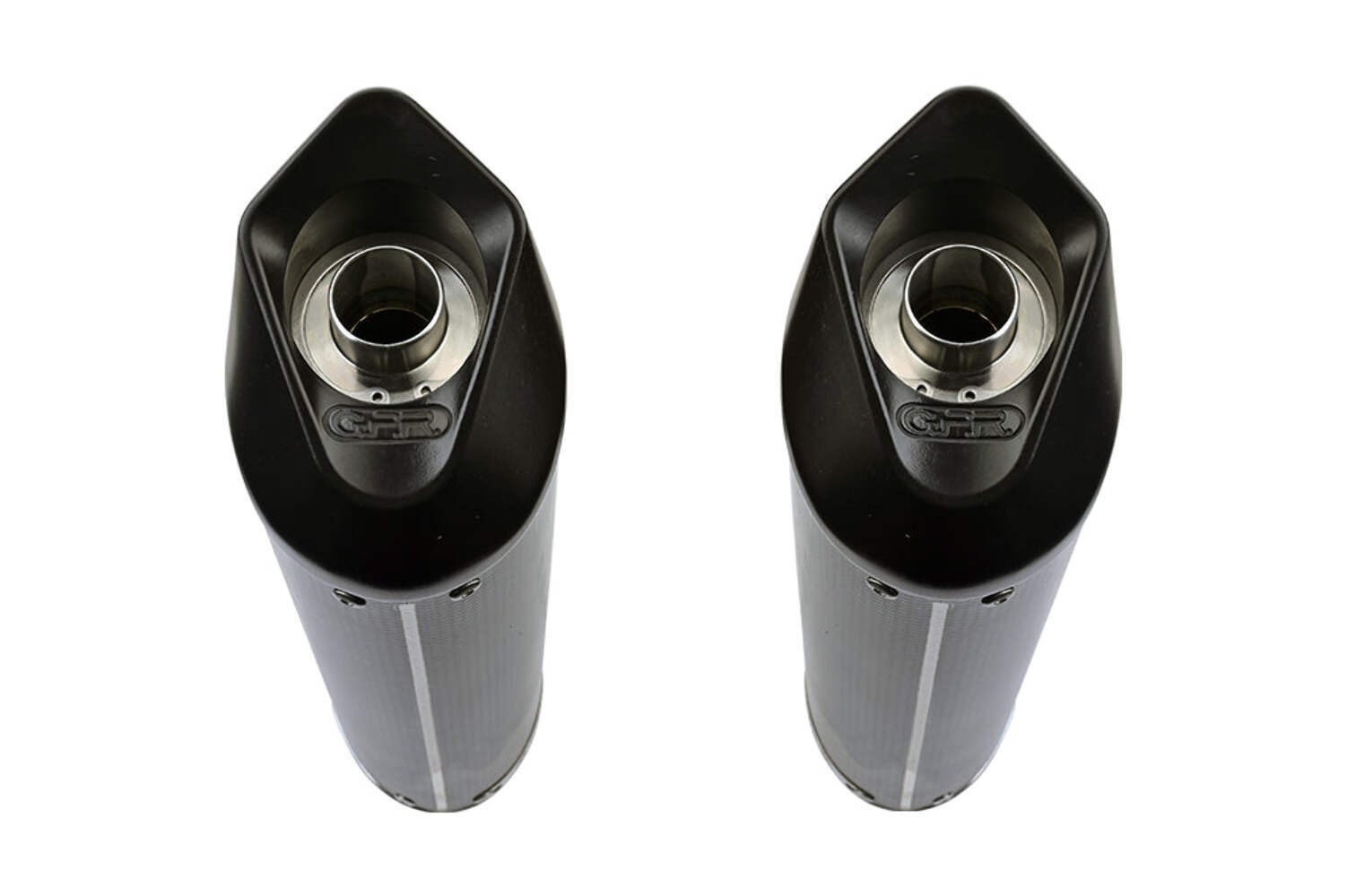 The GPR Double Slip-on Furore Poppy exhaust system enhances your Husqvarna Terra-Strada 650's performance. This Italian-made exhaust delivers superior sound quality and power gains. The exhaust features a carbon-look finish with a stainless steel body. The oval-shaped design measures 120mm in diameter. The exhaust incorporates CNC-machined avional components for precise fitment.