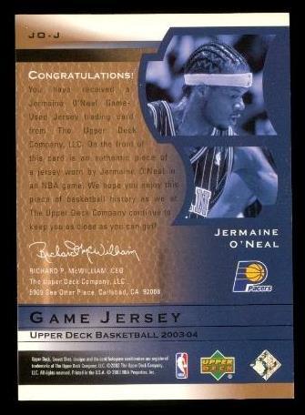 Jermaine O'Neal Card 2003-04 Sweet Shot Jerseys #JOJ Pacers Basketball. Raw and ungraded. Smoke and pet free.