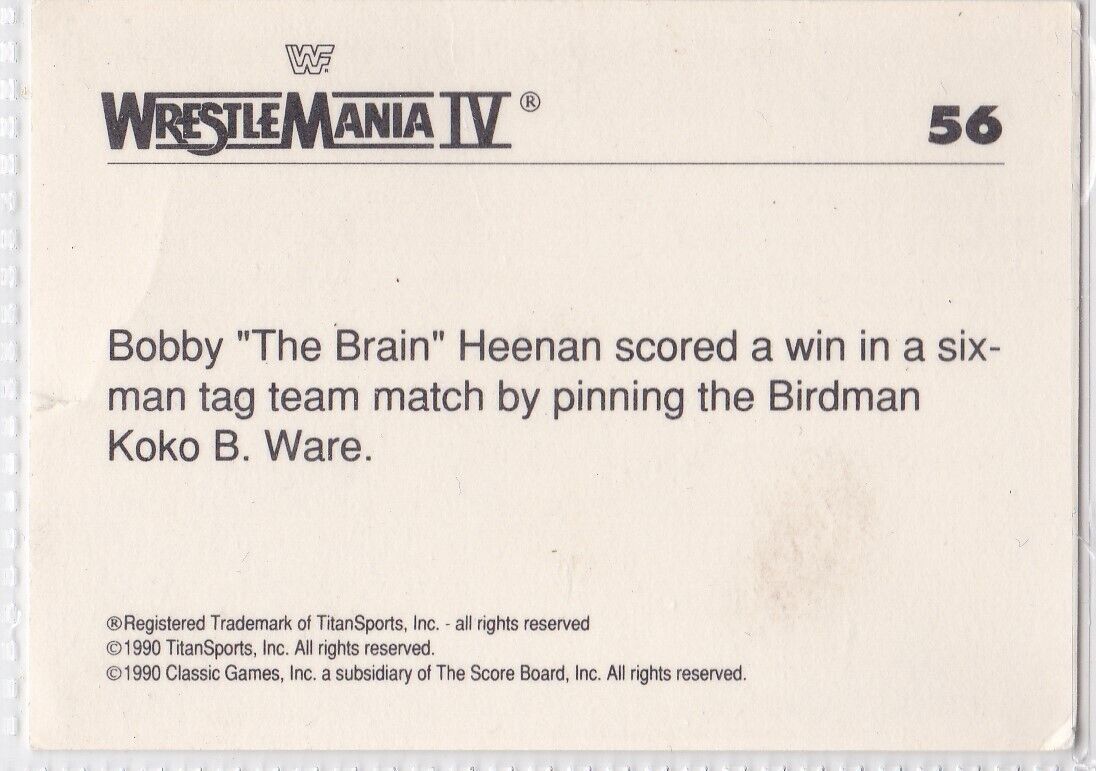 G) WWE WWF 1990 Classic Series 1 Titan Sports Trading Card - WrestleMania IV #56