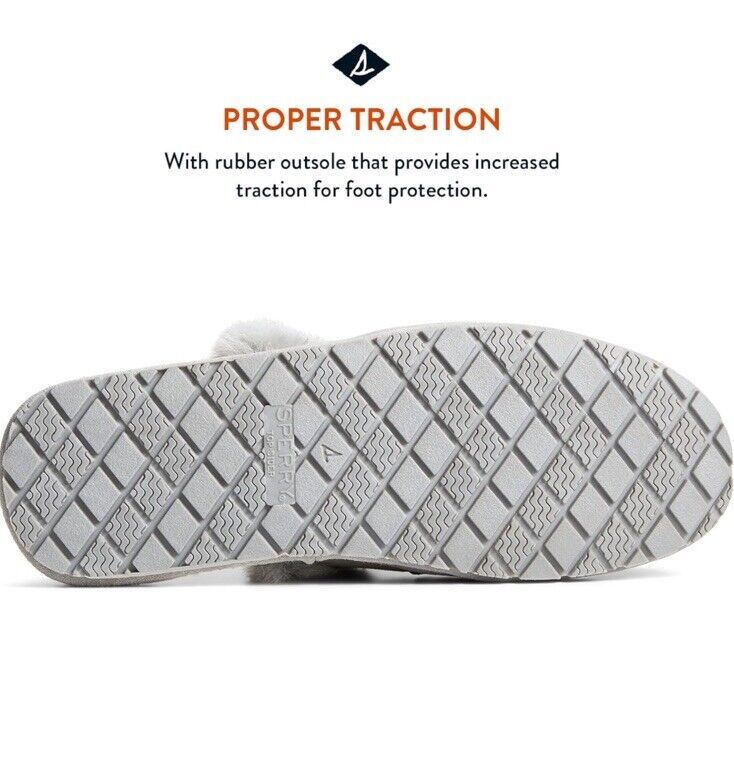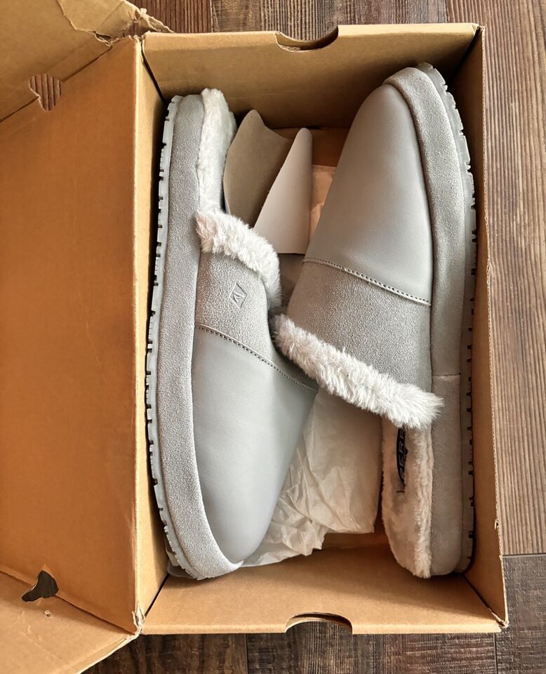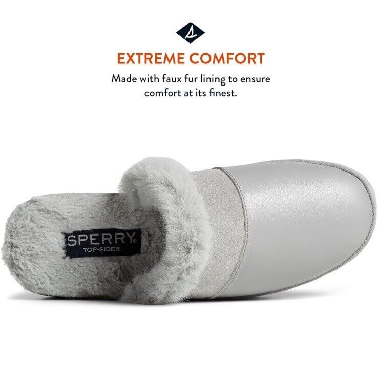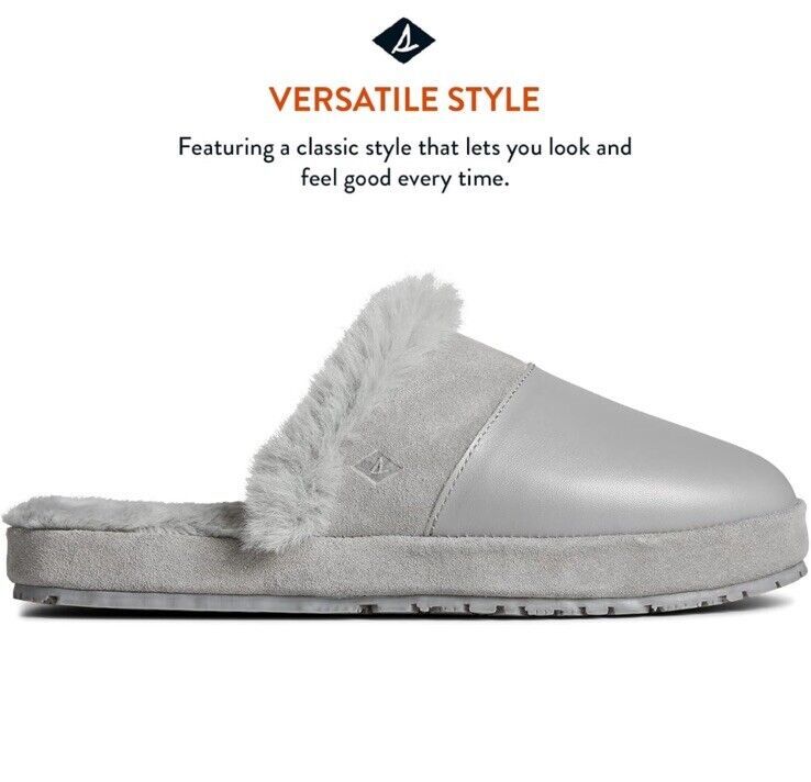 New Sperry Slippers Women's Sz 12 Cape May Mule Gray Leather Faux Fur Lining