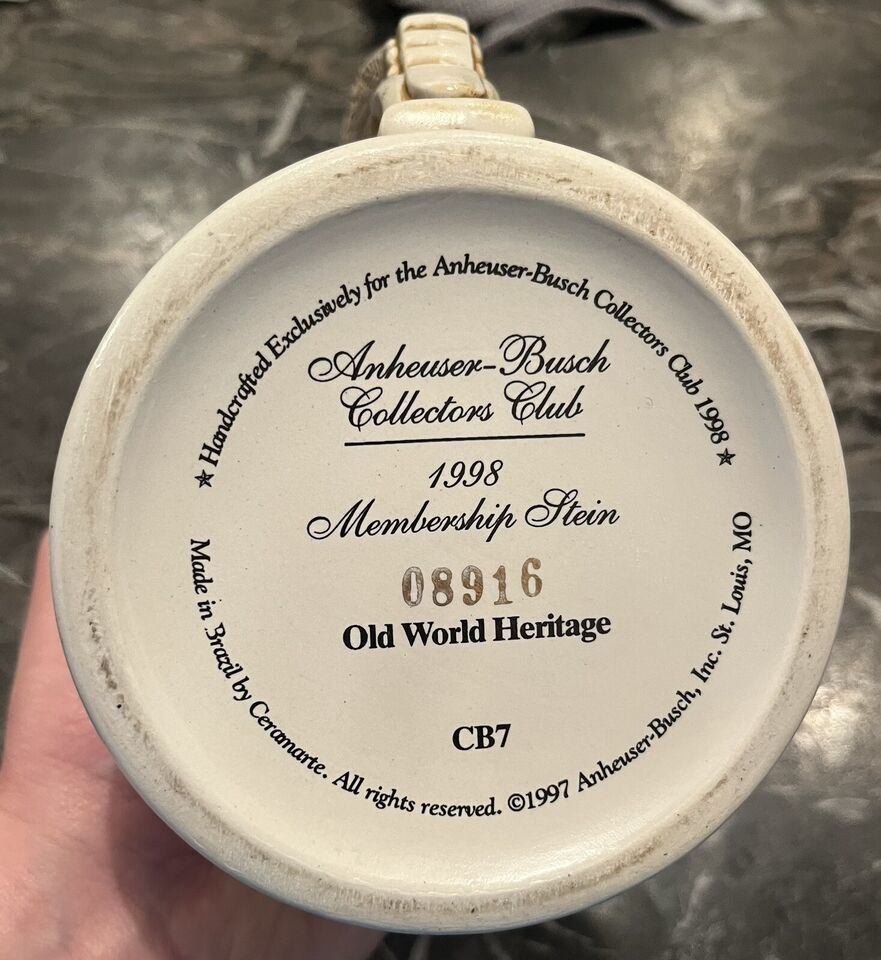 1998 Anheuser Busch Collector?s Club Membership Stein Mug CB7 Old World Heritage.