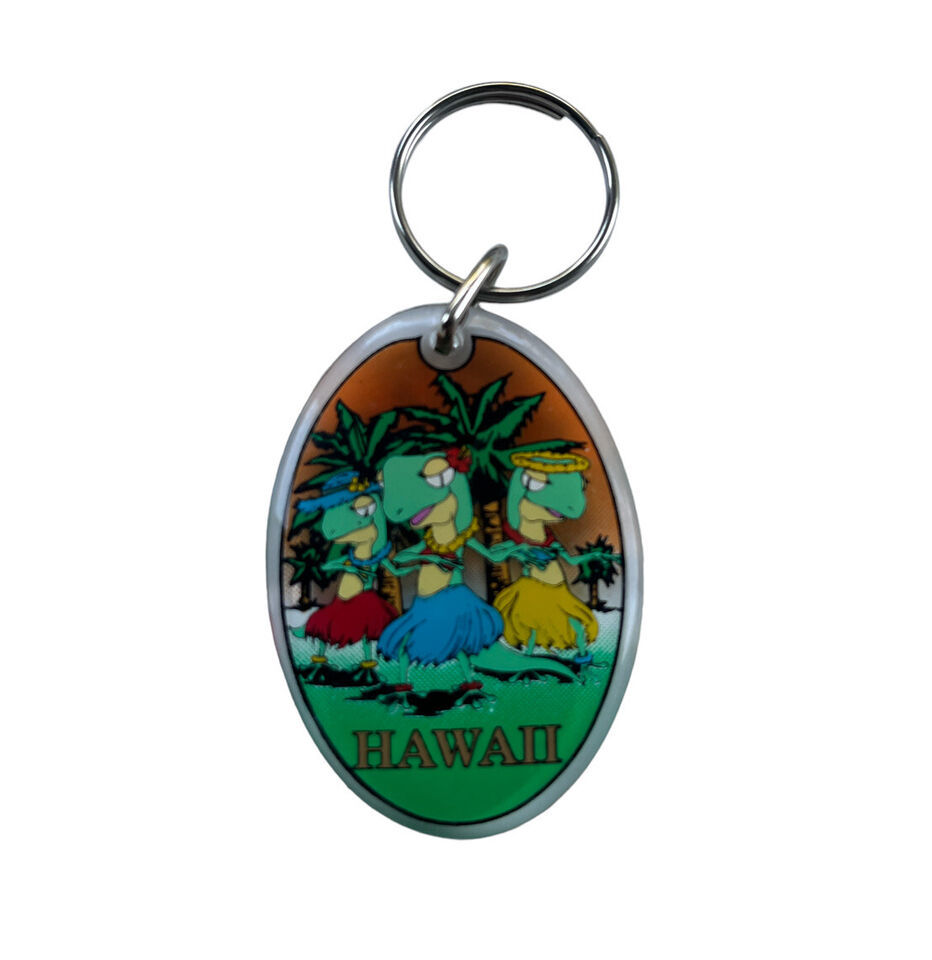 Vintage Hawaii Acrylic Colorful Keychain Souvenir Keyring Dancing Lizards
