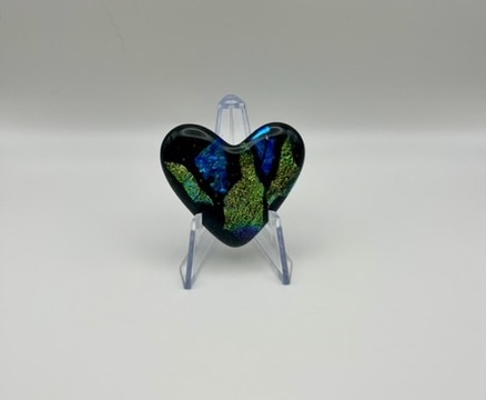 Treat yourself or a special person in your life, to an individually crafted piece of dichroic glass art. Every heart is numbered and signed by the artist, Lauren Mentzel. Each heart mirrors the depth of the cosmos.