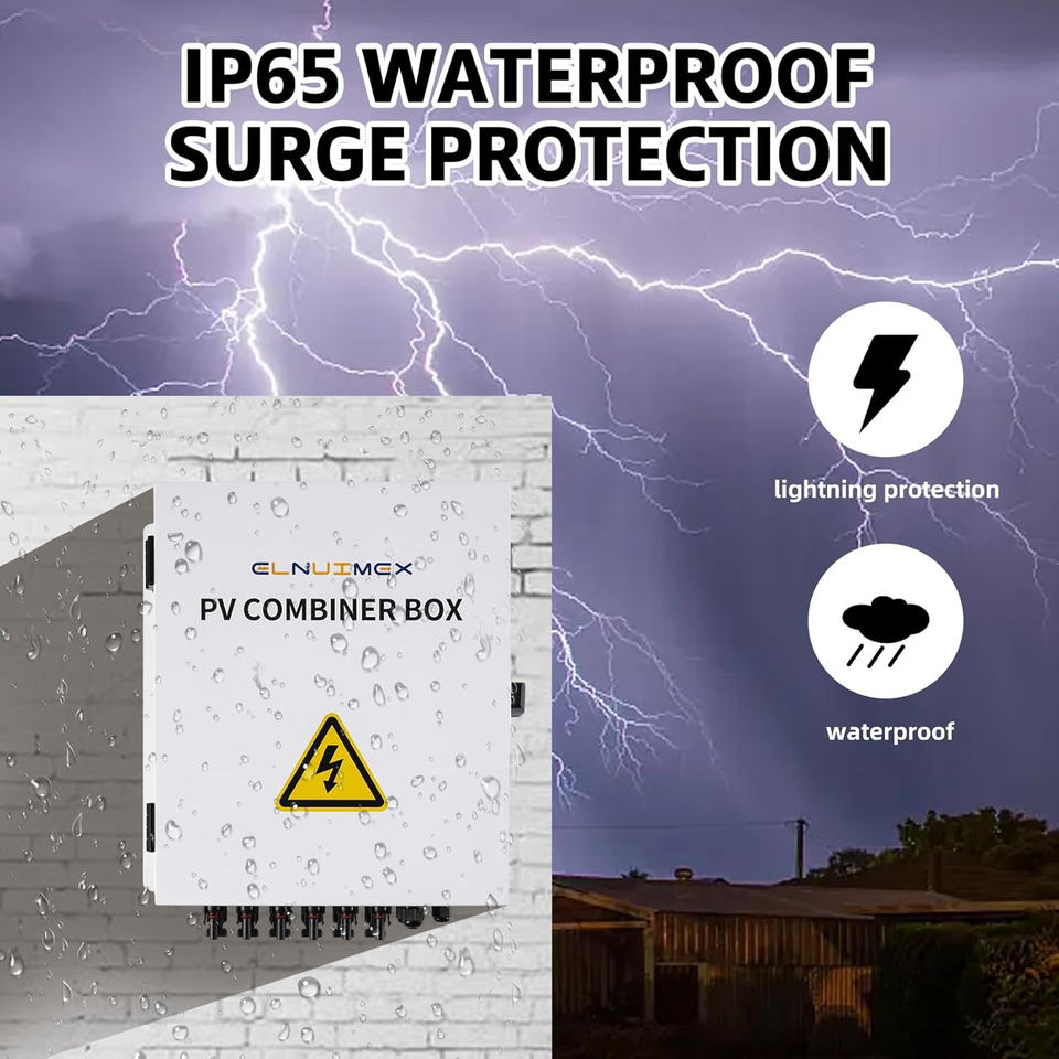 ?Versatile Applications?: Whether it's for powering public facilities in rural areas, solar power generation in venues, residential off-grid systems, or grid-tied systems in factories, our combiner boxes can be used. The solar combiner box is IP65 waterproof and is strong enough to withstand harsh weather conditions.