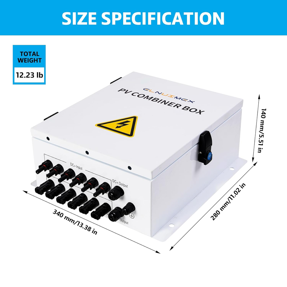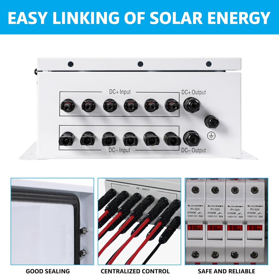 ?Safe to Use?: This metal solar combiner box is equipped with features such as rapid circuit disconnection, lightning protection, anti-reverse connection, and overload protection. The 6 string solar combiner box ensures the safety of your solar PV system, allowing you to harness solar energy with confidence.