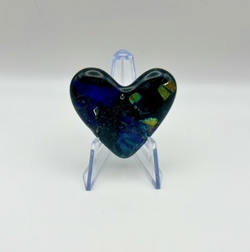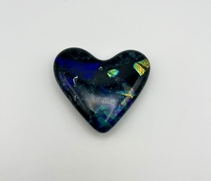 Treat yourself or a special person in your life, to an individually crafted piece of dichroic glass art. Every heart is numbered and signed by the artist, Lauren Mentzel. Each heart mirrors the depth of the cosmos.