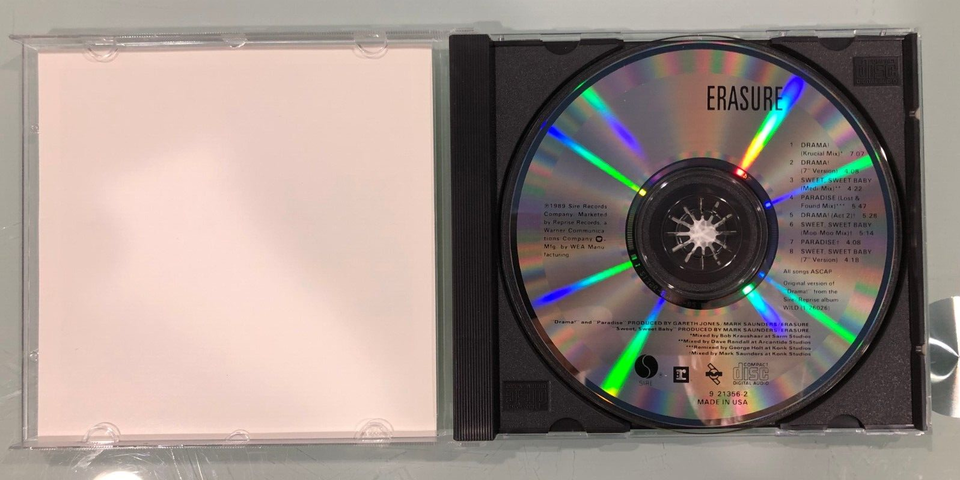 ERASURE DRAMA/SWEET SWEET BABY/PARADISE CD MAXI SINGLE. COMES FROM SMOKE FREE HOME WITH FREE SHIPPING. CD WAS GENTLY PLAYED. BOTH CD AND JEWEL CASE ARE IN LIKE NEW CONDITION.