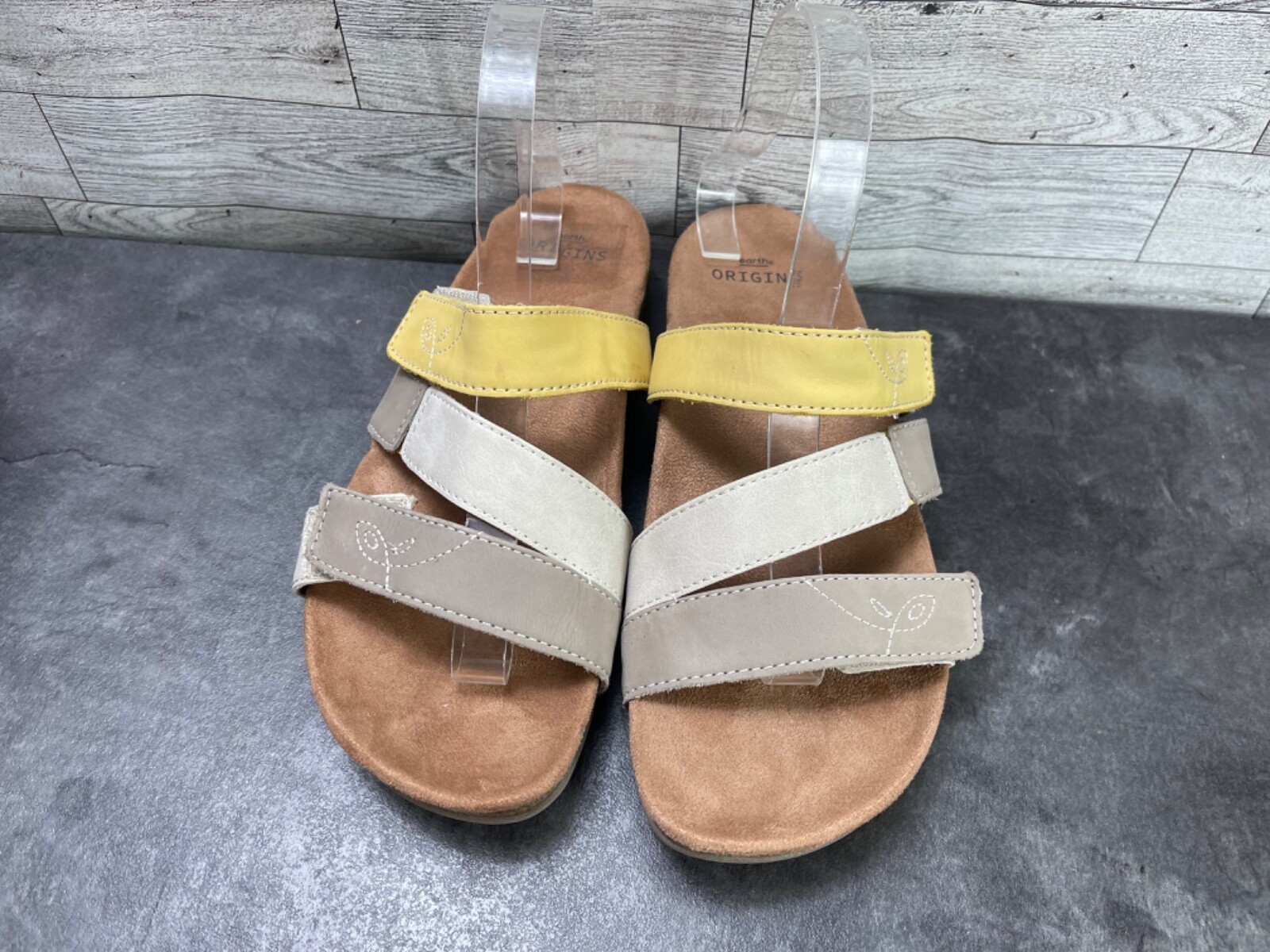 Earth Origins Ohana Women Shoes Yellow Gray 40.5/ 9 M Slip On Slides Sandals