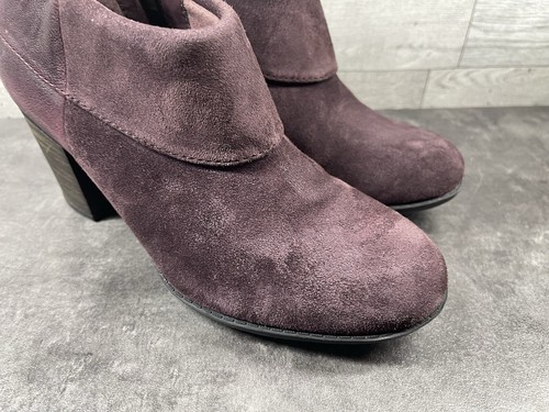 Clarks Enfield Canal Boots Shoes Women 7.5 Red Purple Suede Ankle Heeled Bootie