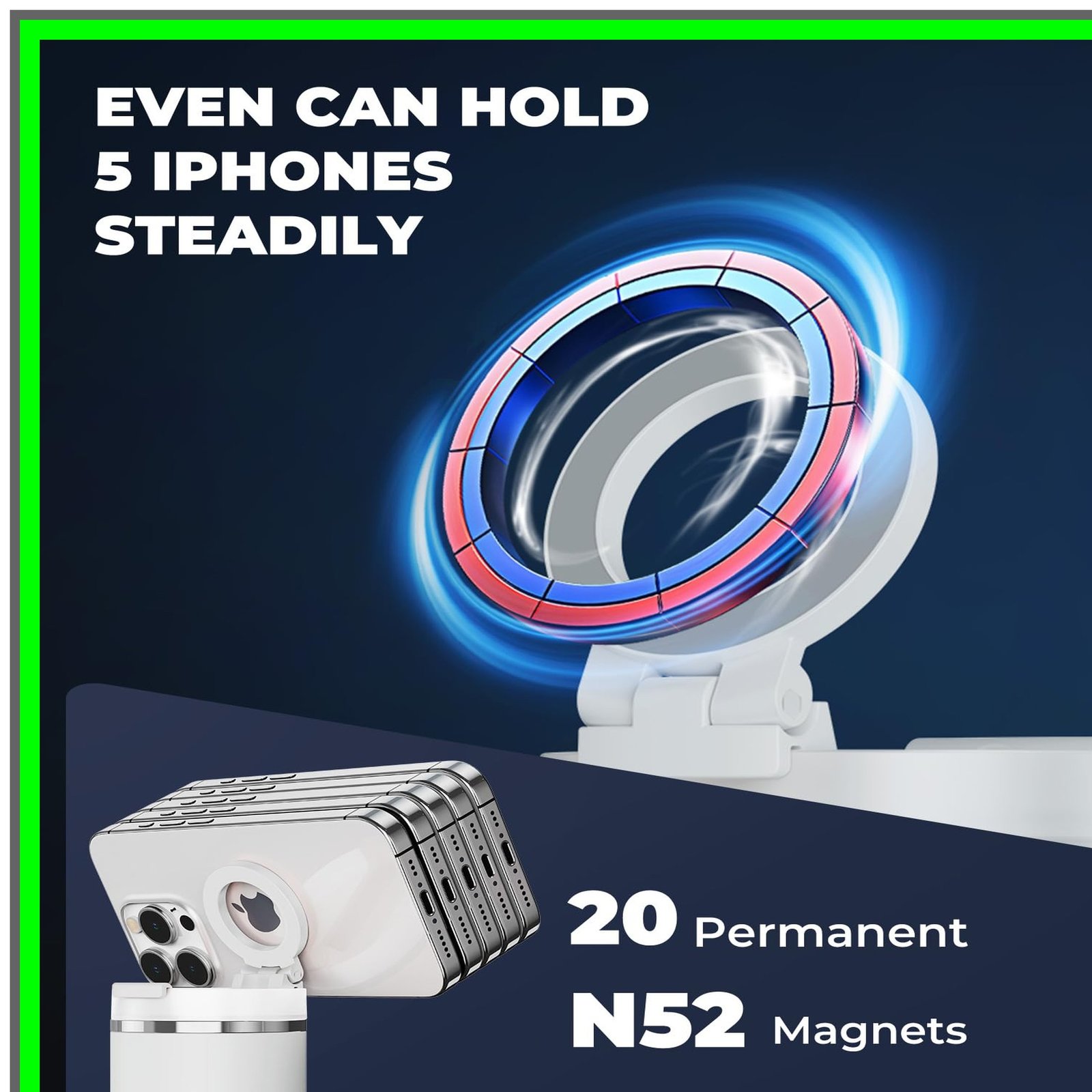 Magnetic holder, Z-shape design, 90-degree adjustability.