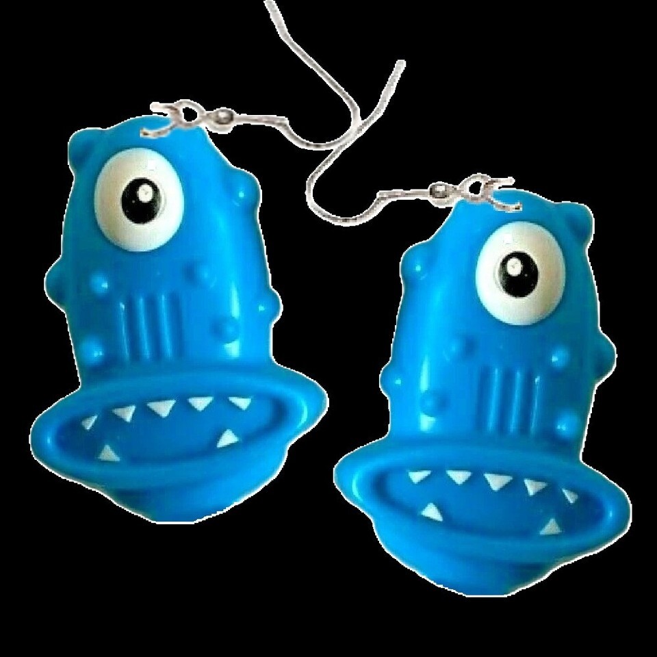 Huge 3D BLUE ALIEN MONSTER CYCLOPS Funky EARRINGS Sci-Fi Costume Novelty Jewelry