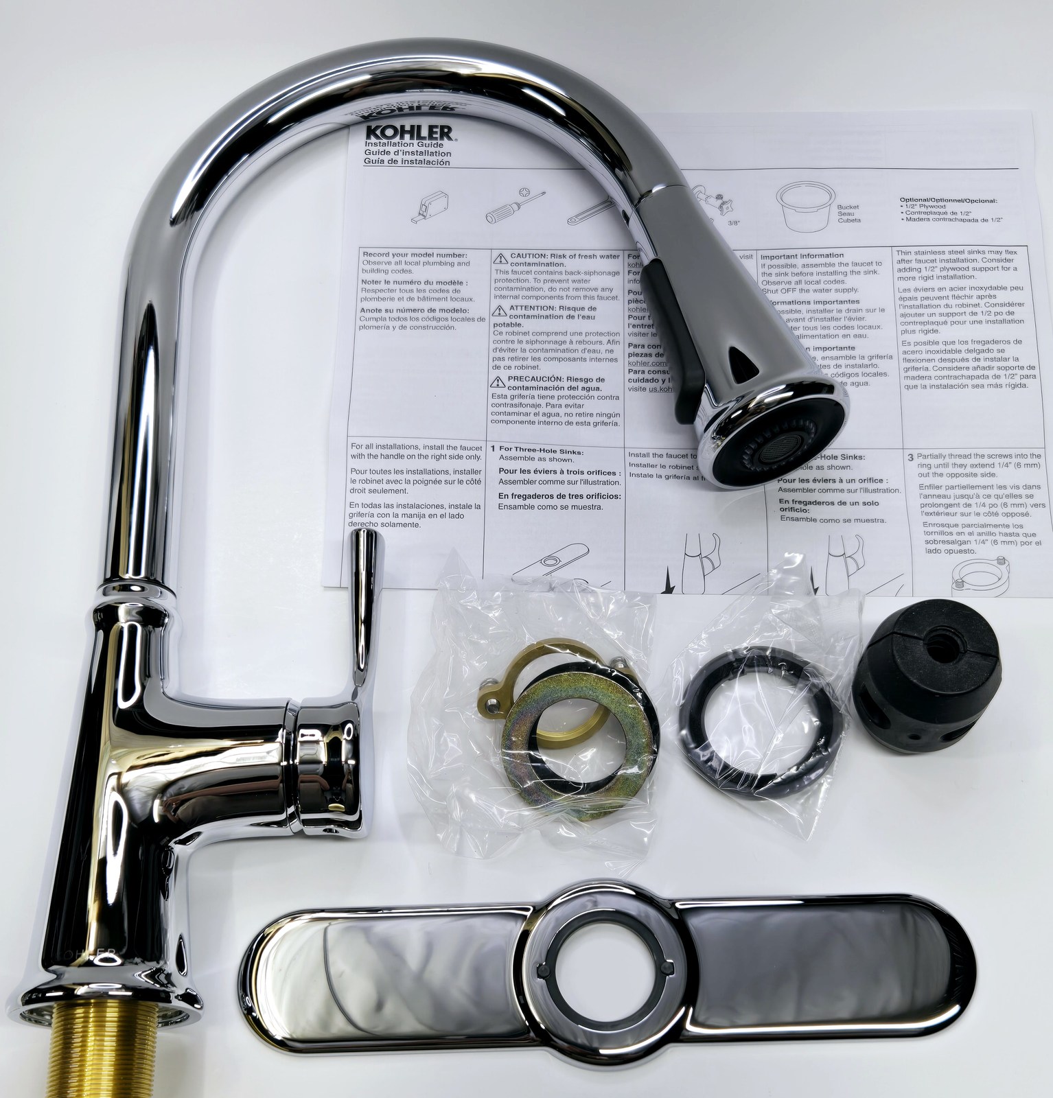 Installs with 1- or 3-hole sink (escutcheon plate included)
