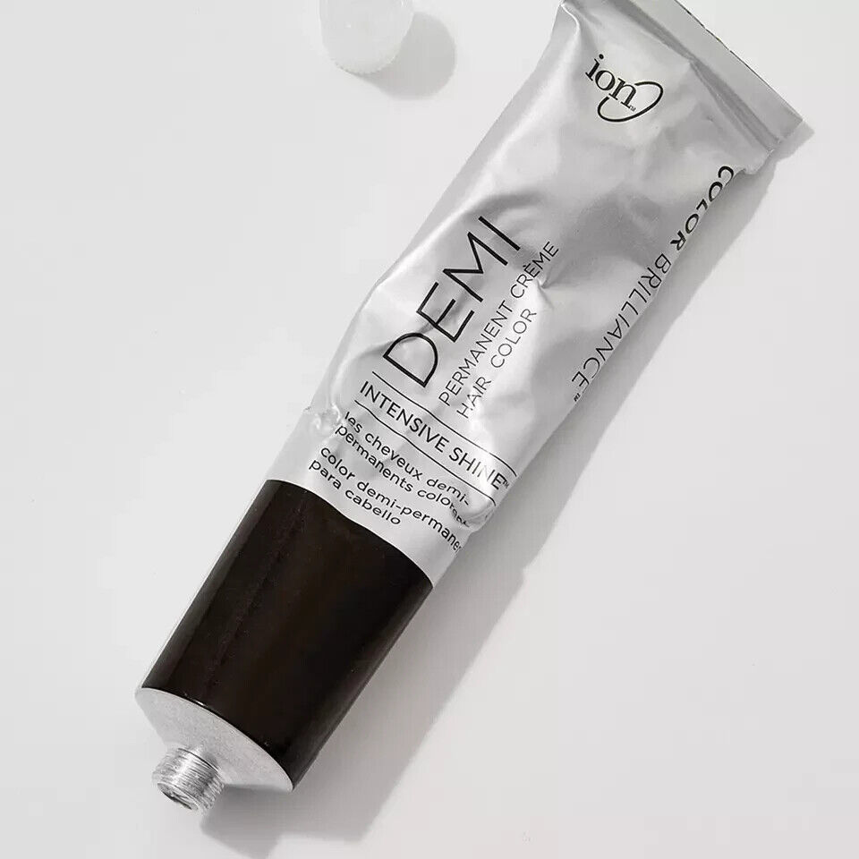 ion's formulas are PPD-free and enriched with Hyaluronic Acid, Argan Oil, Pequi Oil, and botanicals to nourish and strengthen hair from within. Not to mention, ion Hair Color is gentle on hair, containing up to 38% less ammonia than the leading professional brands on the market. Unlock your hair?s true potential with Ion?s cutting-edge, salon-quality color science and bring home vibrancy like never before. The Ionic formula provides protection for stronger hair structure. ion Color Brilliance Demi Permanent Creme Hair Color contains botanically derived nourishing ingredients with a refreshing fragrance.