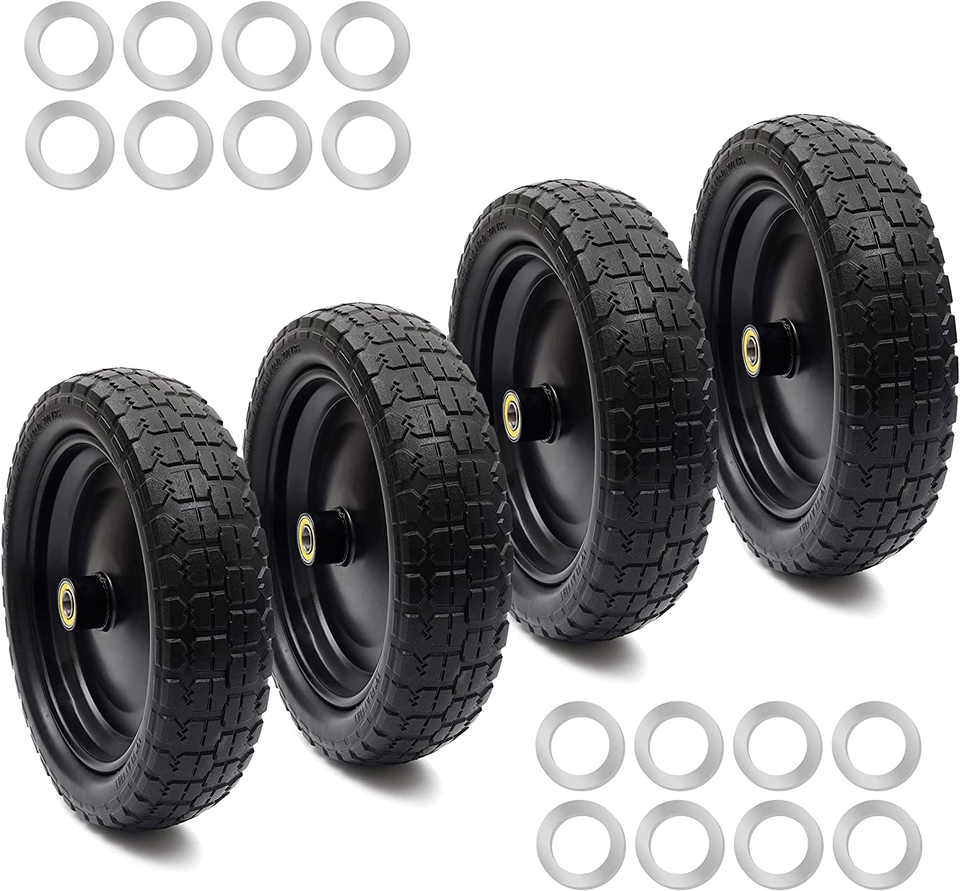(4-Pack) 13?? Tire for Gorilla Cart - Solid Polyurethane Flat-Free Tire and Wheel Assemblies - 3.15? Wide Tires with 5/8 Axle Borehole and 2.1? Hub