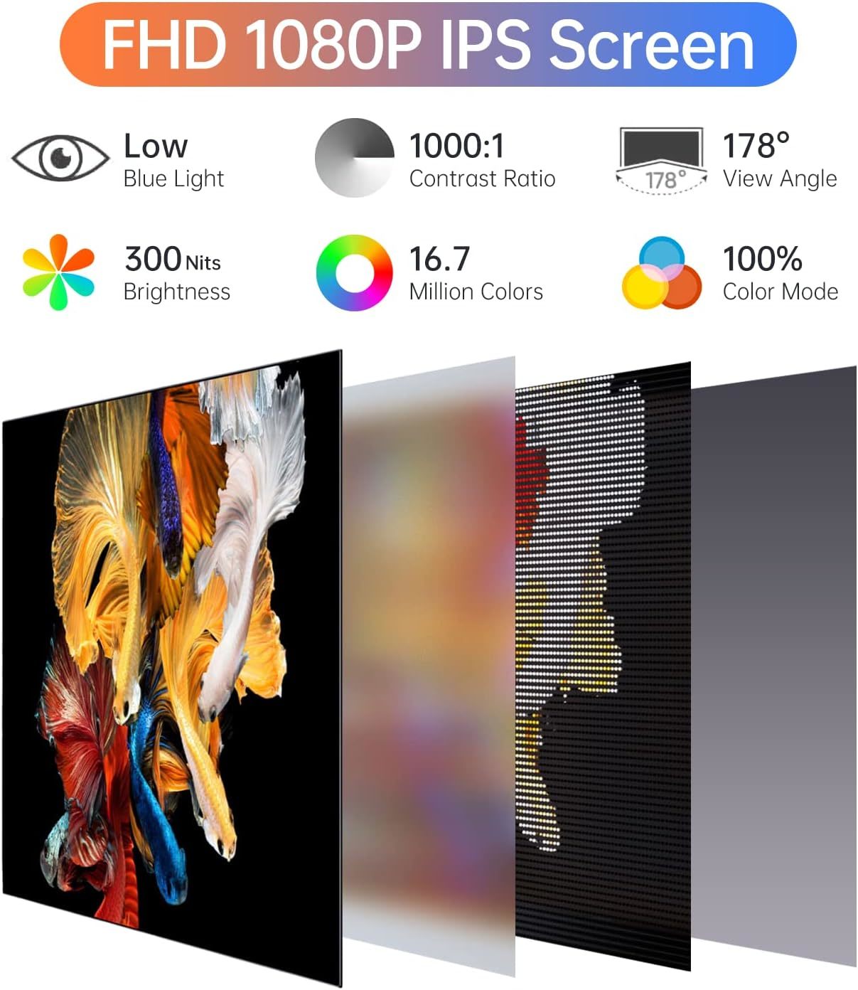 Product Dimensions: 16.9 x 1.96 x 11.4 inches Item Weight: 1.52 pounds Manufacturer: ForHelp Item model number: F156P1 Standing screen display size: 15.6 Aspect Ratio: 16:9 Resolution: 1920 x 1080 Total Usb Ports: 2 Brand: ForHelp Screen Size: 15.6 Resolution: FHD 1080p Screen Surface Description: Matte