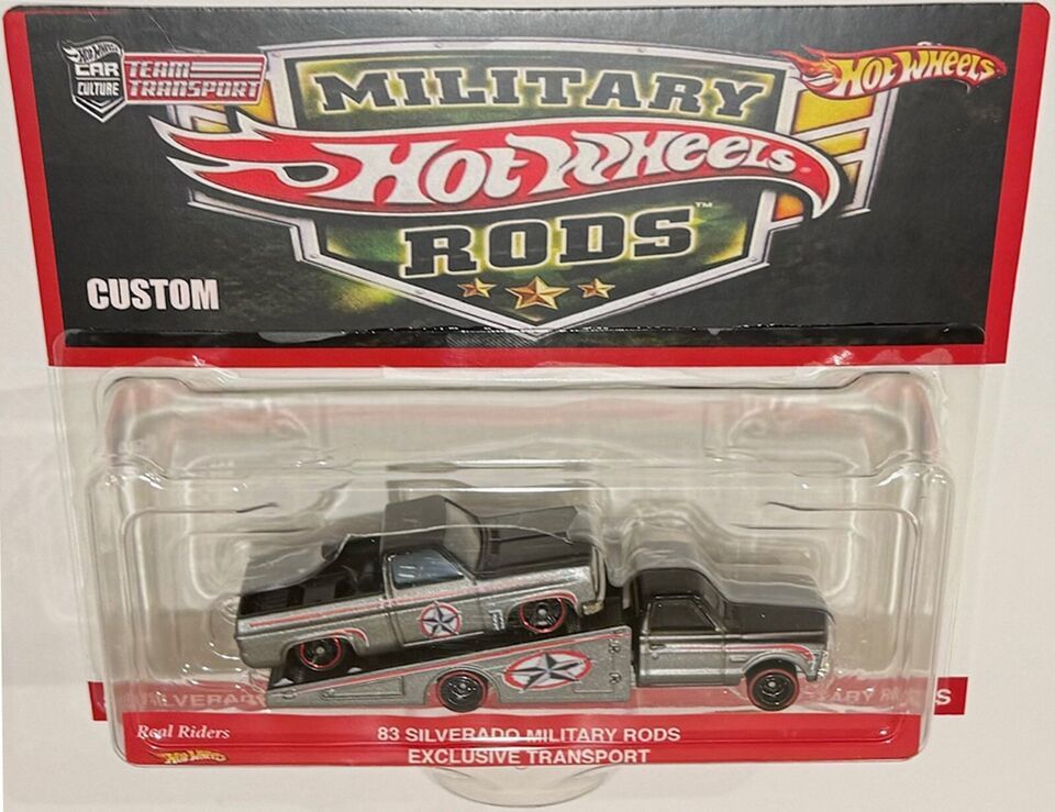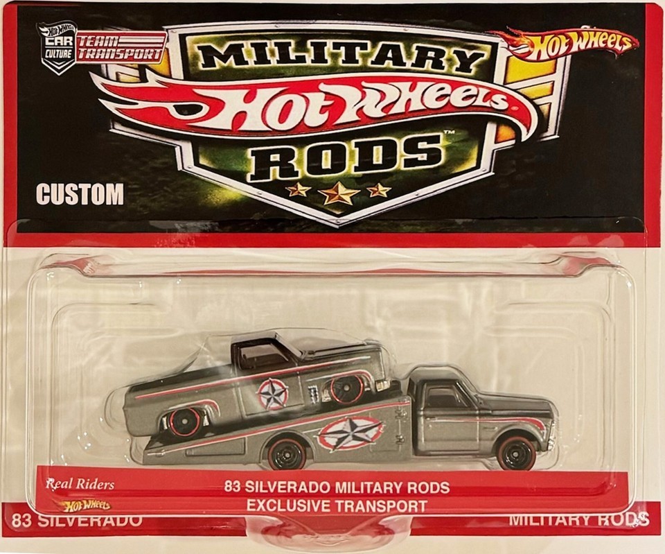 '83 CHEVY SILVERADO Custom Hot Wheels Team Transport Military Rods Series Clone 1:64 Scale Collectible Die Cast Model Car Set.