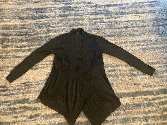Poof Clothing Shirt Women's Medium Draped Open Front Long Sleeve Black Sweater