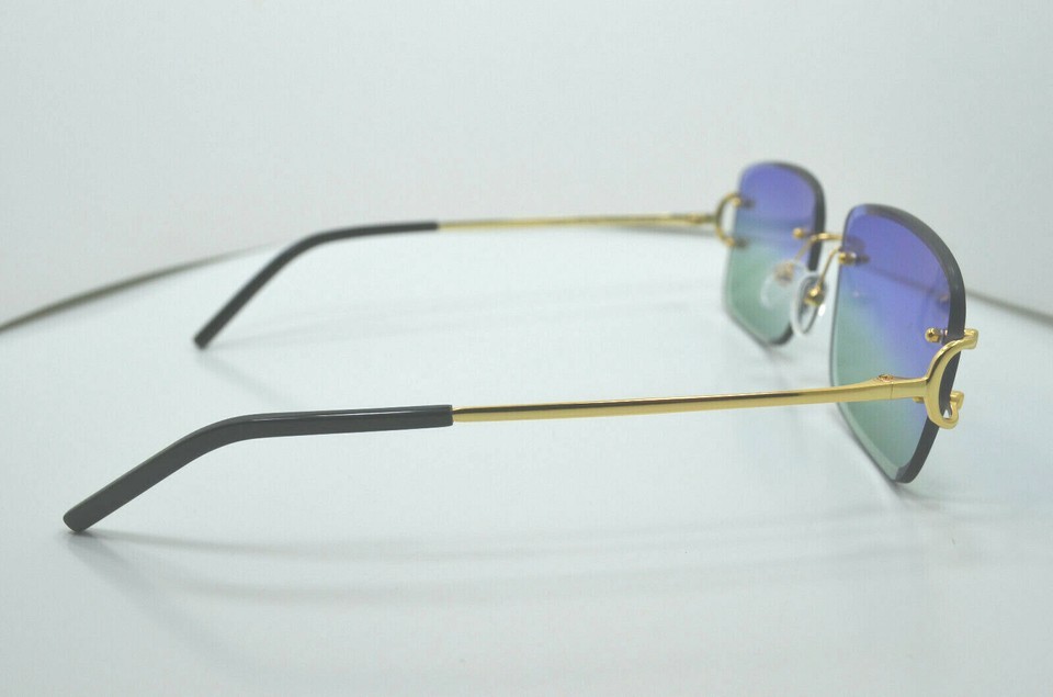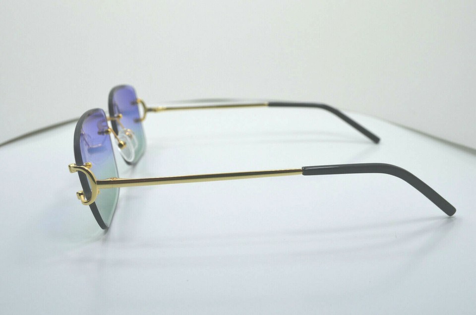 Vintage Collection Rimless Drill Mount Frames, Gold a Gradient Brown Anti Reflective Bevel Lenses. 18K GOLD PLATED