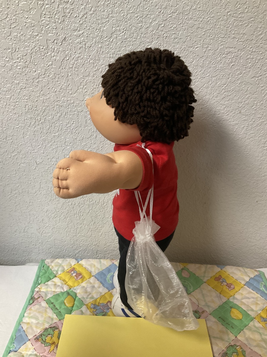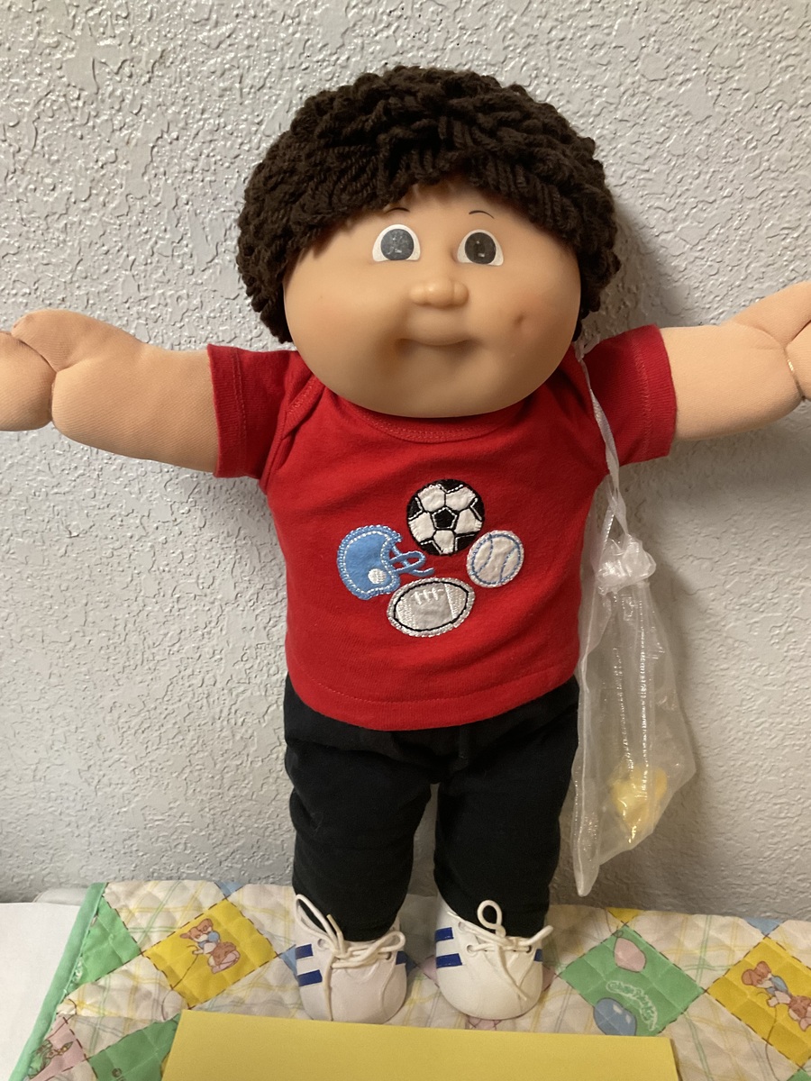 This Cabbage Patch Kid is in great condition. Even more adorable in person! My daughter and I are so pleased to add him to our collection. We even found the perfect pair of glasses to put on him. Thank you!