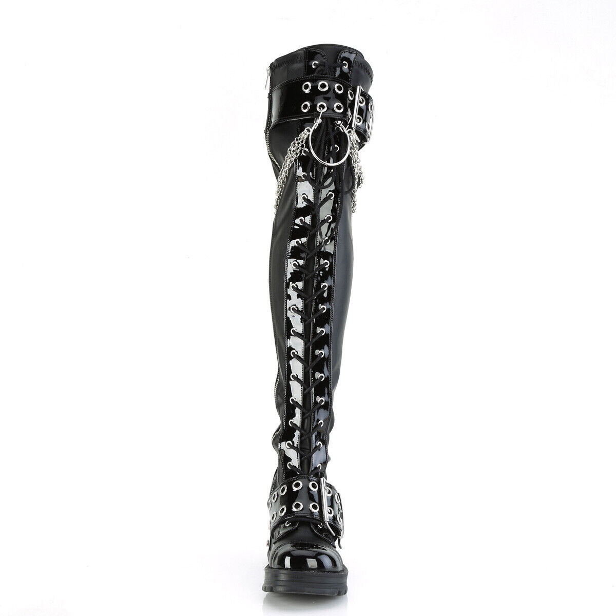 Demonia BRATTY-304 2" Chunky Heel Platform Over The Knee Boots w Chains Buckles