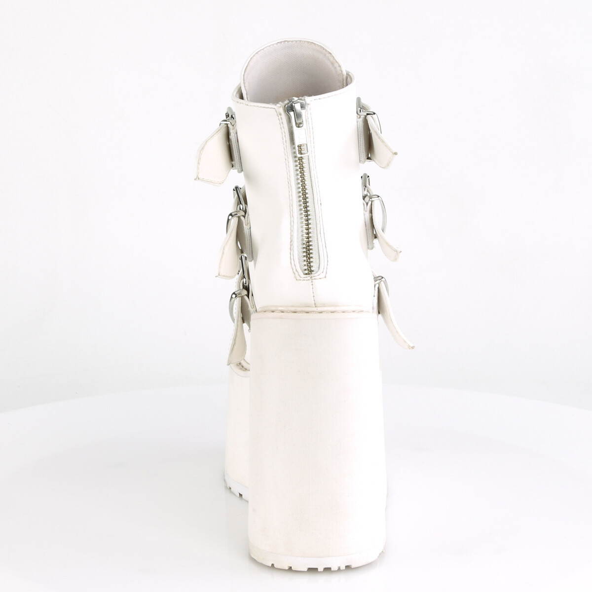 DEMONIA SWI105/WVL Wedge Platform Punk Goth Buckle Strap Women White Ankle Boots