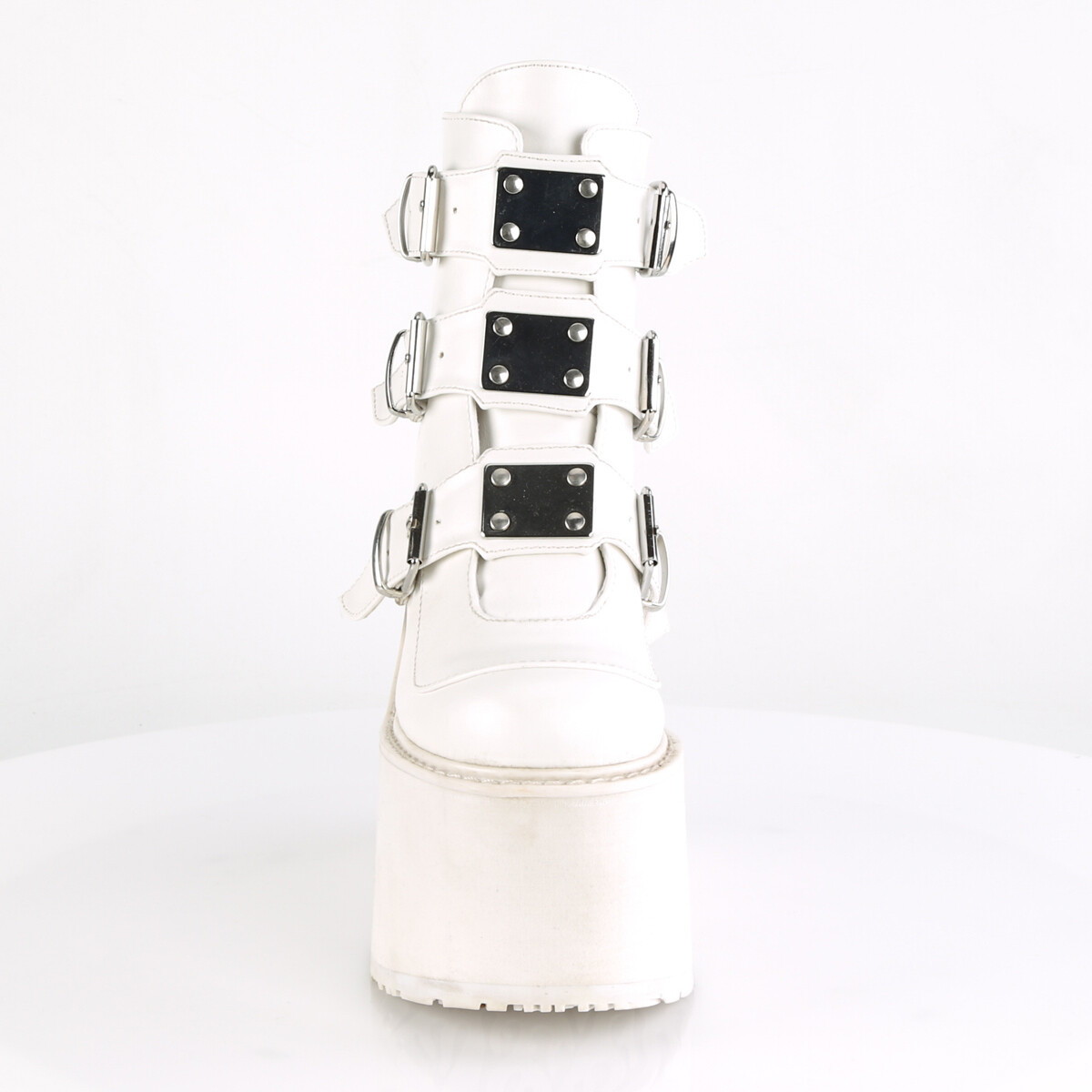 DEMONIA SWI105/WVL Wedge Platform Punk Goth Buckle Strap Women White Ankle Boots