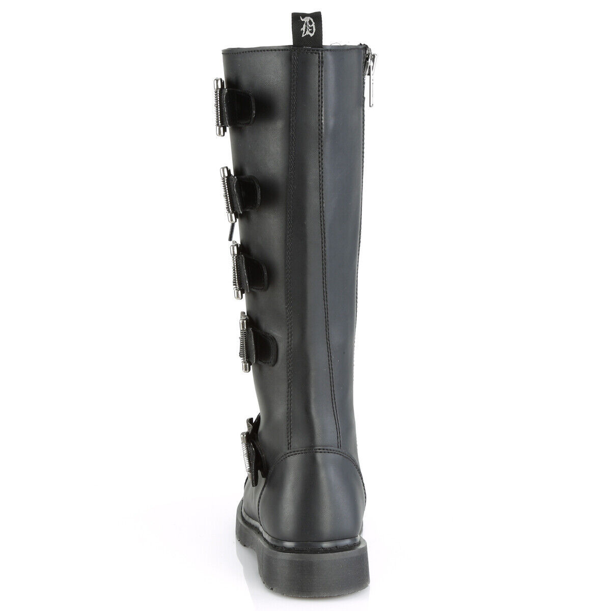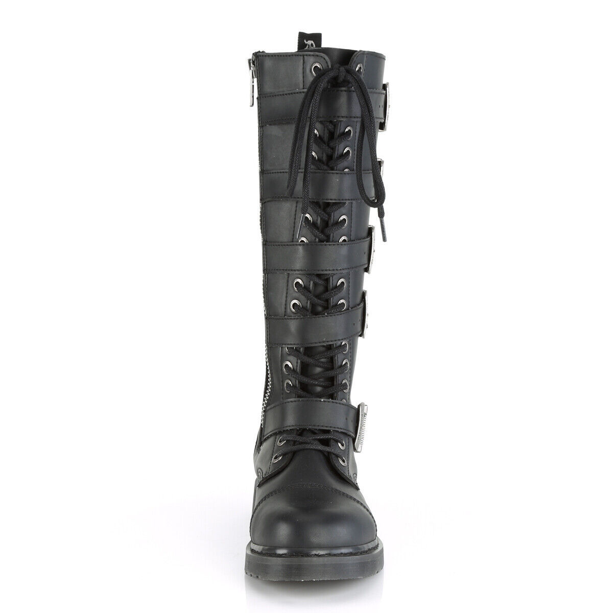 1 1/4" (32mm) Heel 20 Eyelet Unisex Knee High Combat Boot Featuring 5 Buckle Straps, Inside Zip Closure