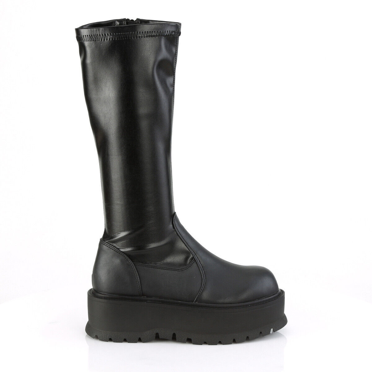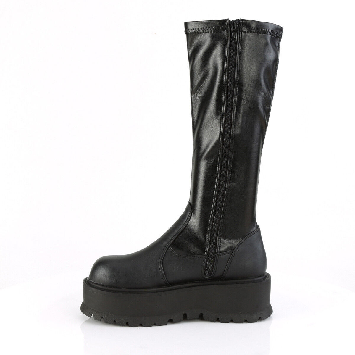 DEMONIA SLACKER-200 Women's Black 2" Platform STR Knee High Side Zip Boots