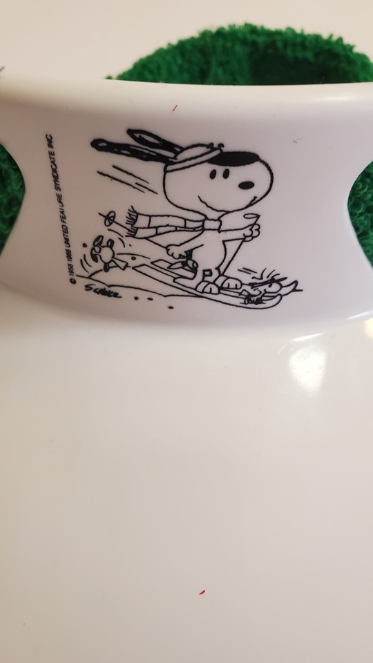 Vintage Peanuts Snoopy and Woodstock skiing on (tennis?) visor
