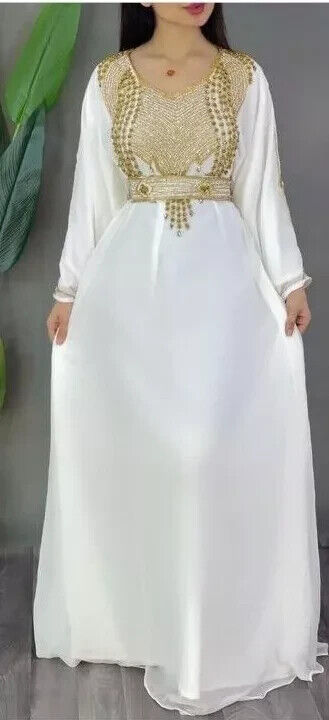 Kaftan Gown Dress Moroccan Hand Work Dubai Stylish Abaya Long Farasha Islamic