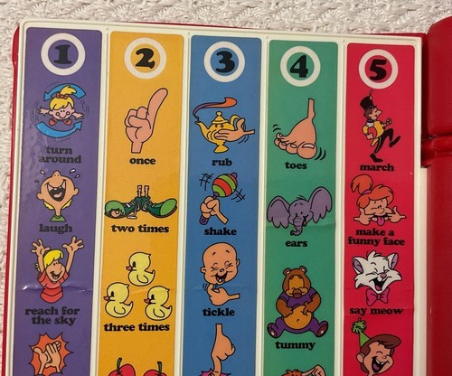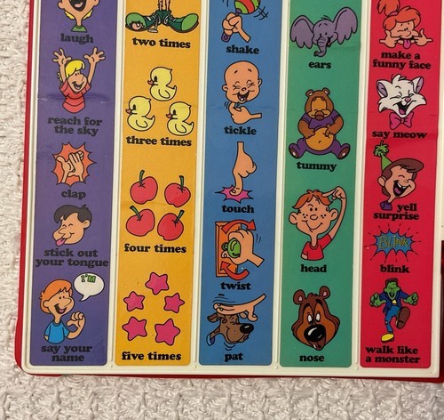 "See 'n Say Story Maker. 'Winky Says.' When you push the buttons, you can make up silly sentences and stories. You just select a phrase from each column until you have the story you want. There is also a Surprise button you push to hear a surprise sentence. Great for young kids to learn words and sentences."