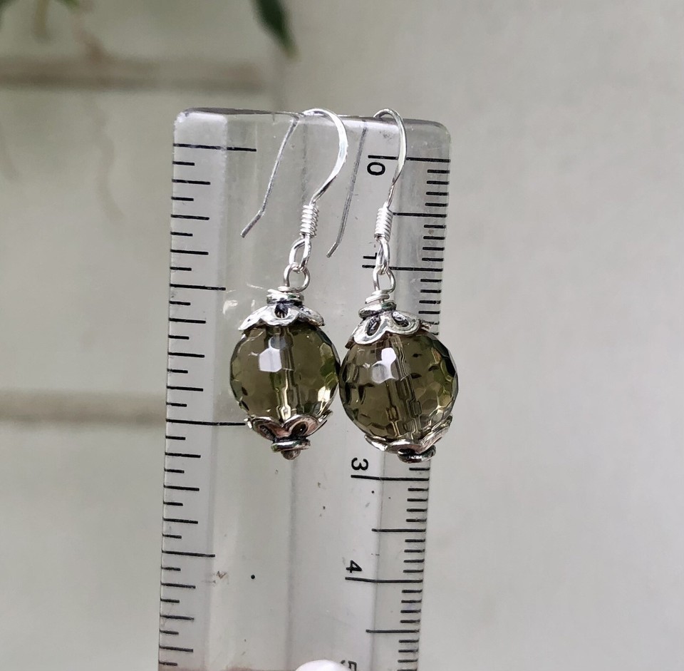 Boucles d'oreilles originales en argent sterling 925 + perles rnd 10 mm topaz...