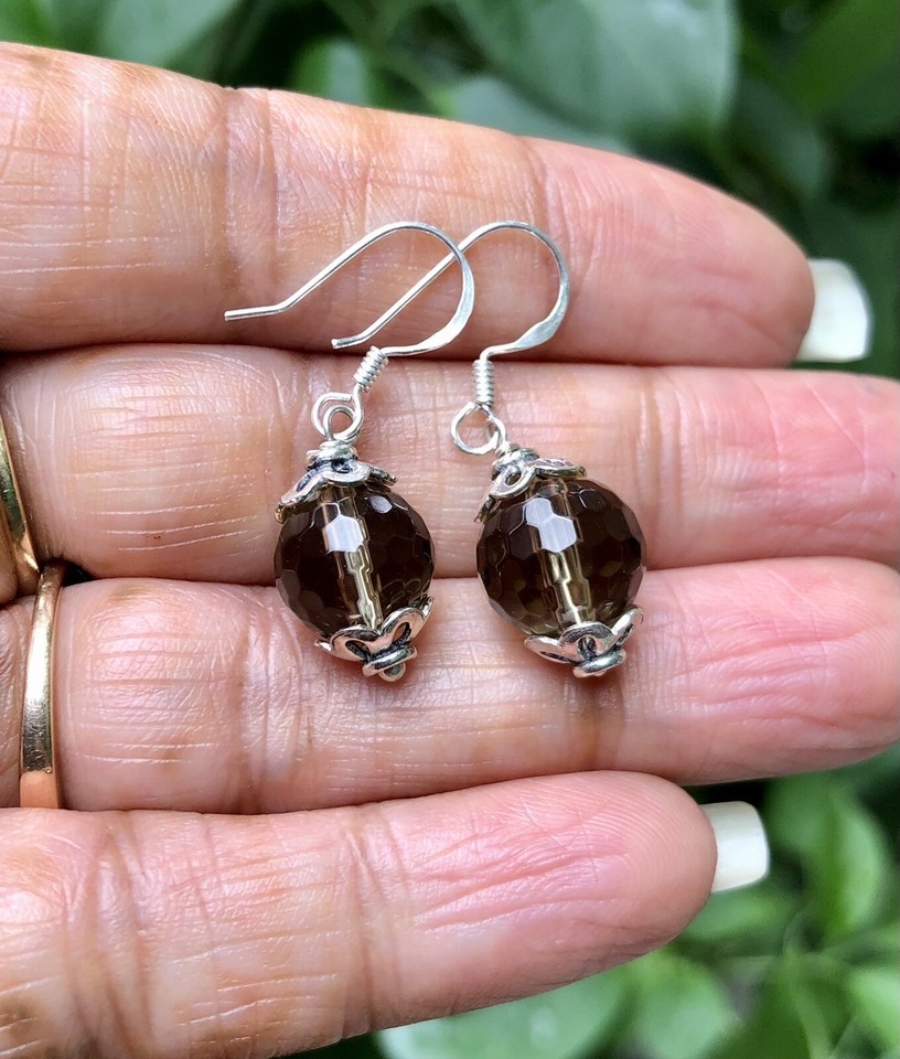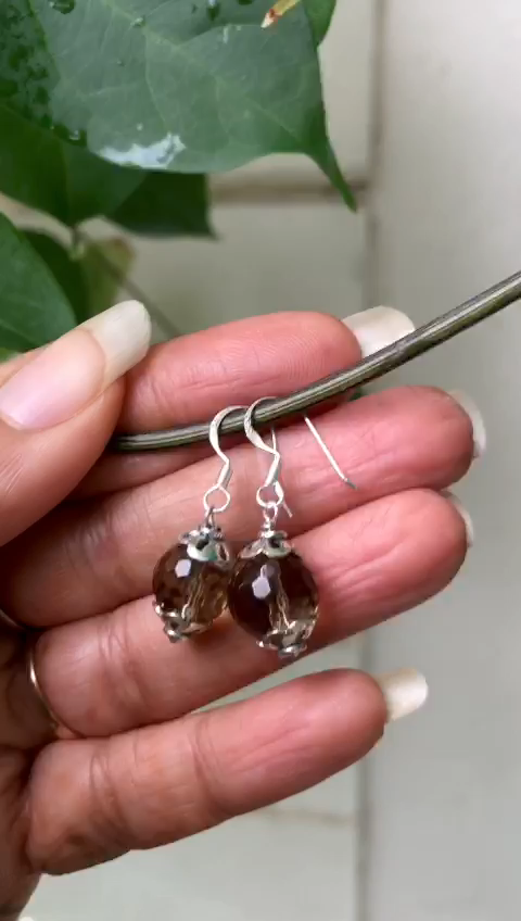 Boucles d'oreilles grosses perles, boucles d'oreilles en pierre fumee, mala tibetain, quartz fume naturel, quartz fume original, perles de quartz fume, boucles d'oreilles de protection, boucles d'oreilles energisees, boucles d'oreilles en perles, boucles d'oreilles de guerison, bijoux d'ete mala equilibrant les chakras, cadeau pour les enfants, cadeau pour elle