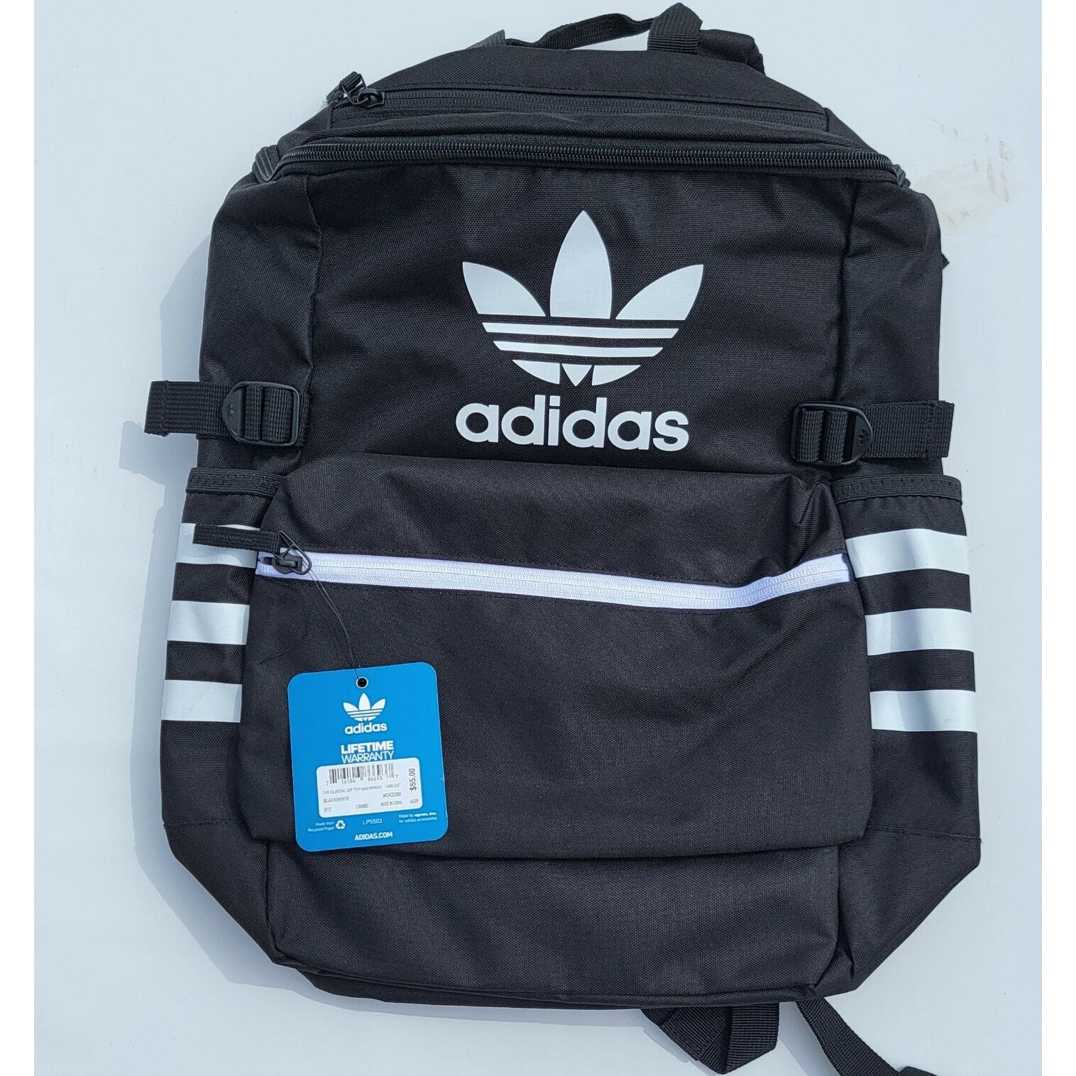 Adidas Originals Trefoil Base Backpack School Laptop Bag Bookbag Black White