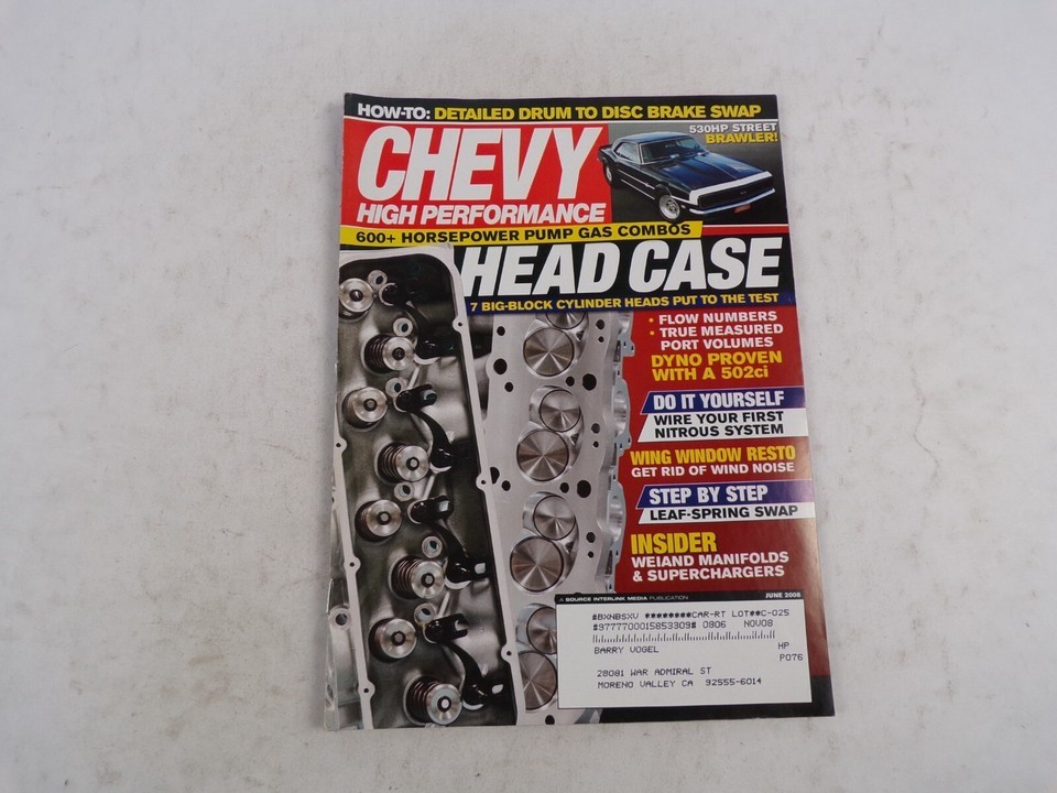 Featuring: June 2008 Chevy High Performance 600HP Insider Weiand Manifolds A 502ci - Weiand Manifolds amp; Super Chargers Dyno Proven - 502ci - Magazine is complete and in nice condition - Showing only light to moderate wear