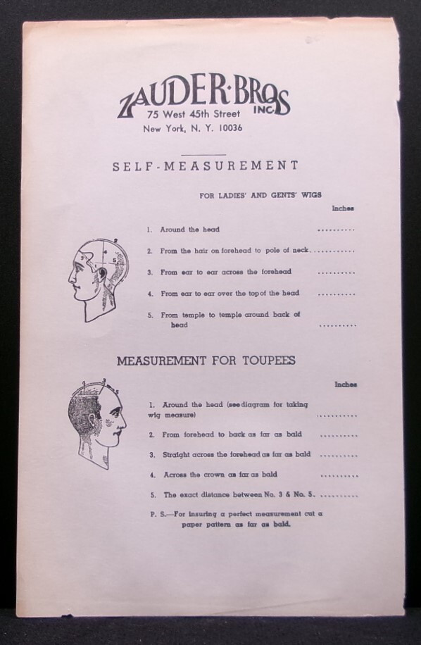 3. A small booklet (8 pages) showing examples of various hairpieces.