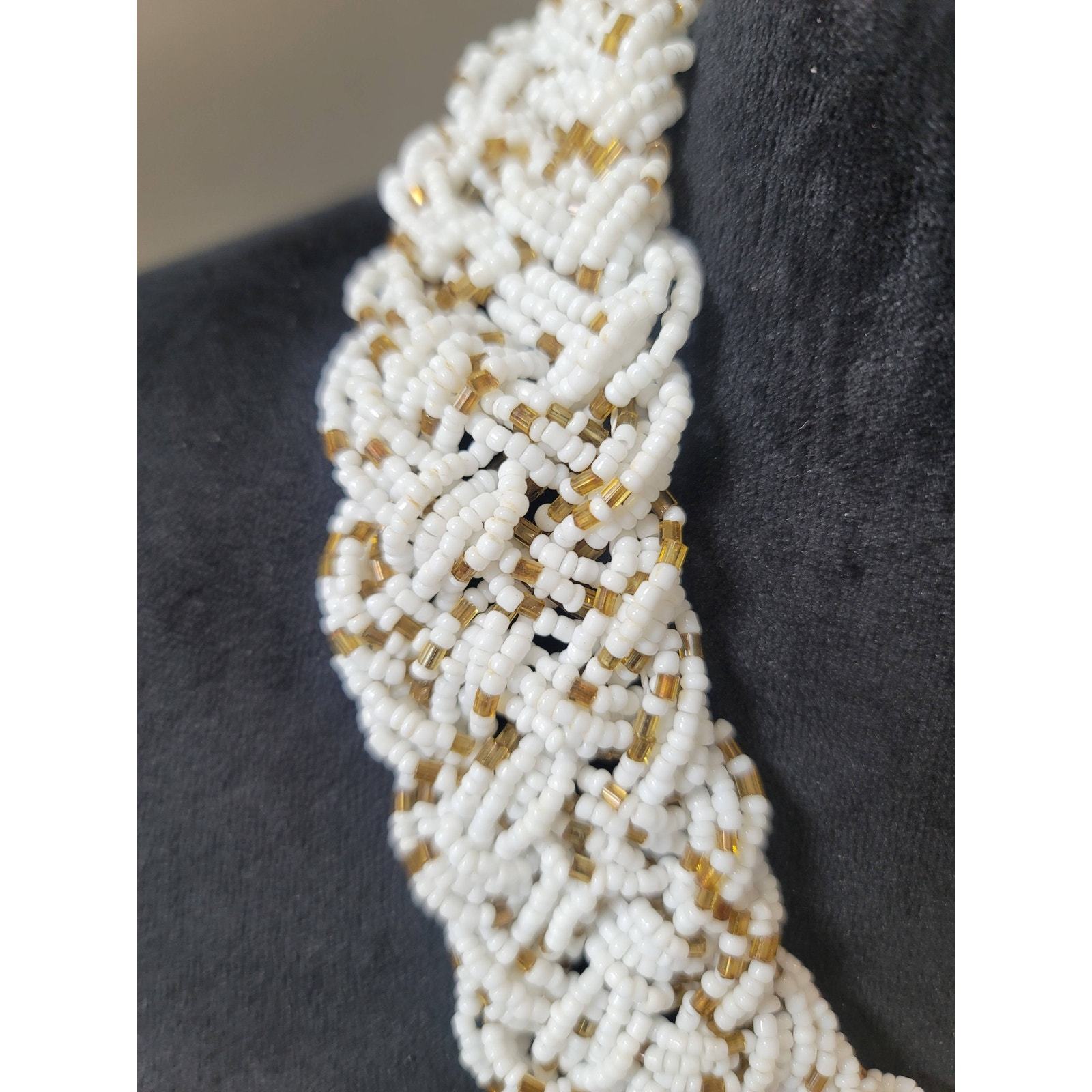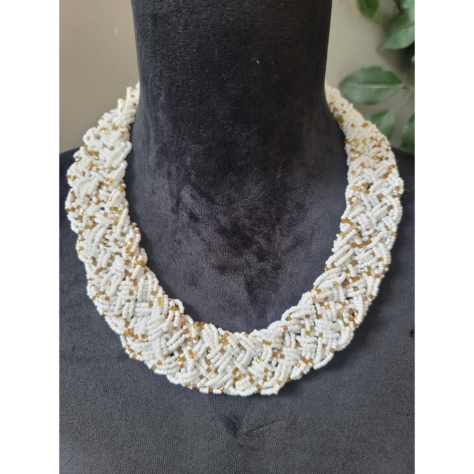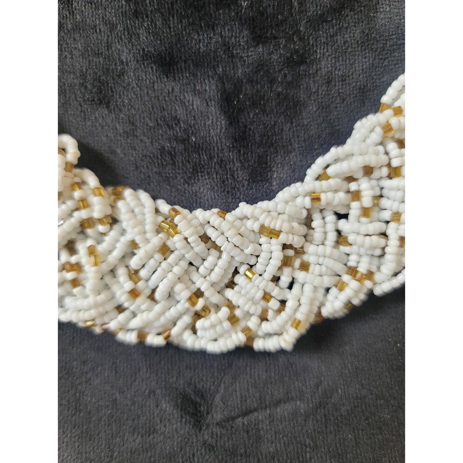 Women's White Gold Seed Beaded Necklace Lobster Claw Clasp Handmade Jewelry