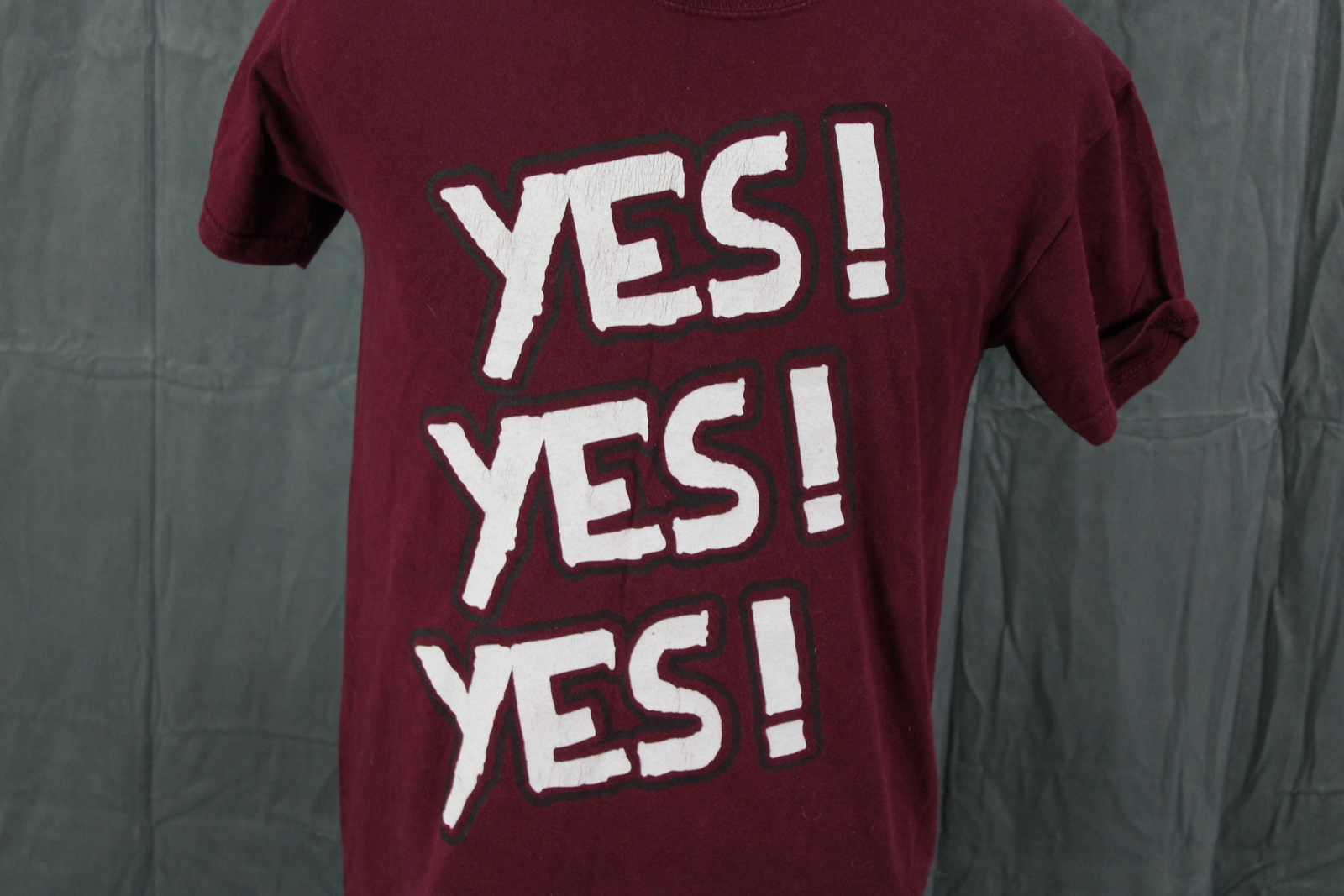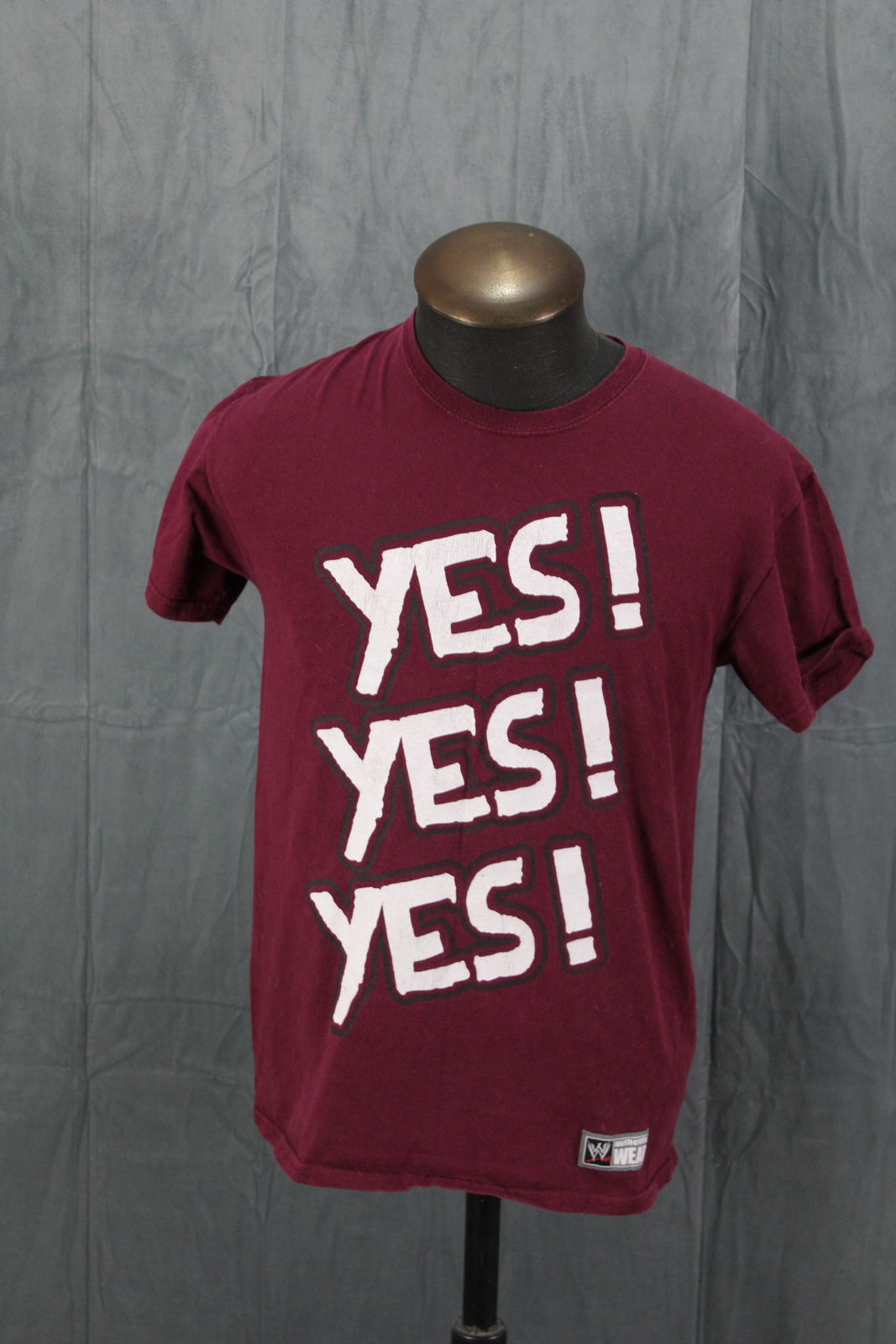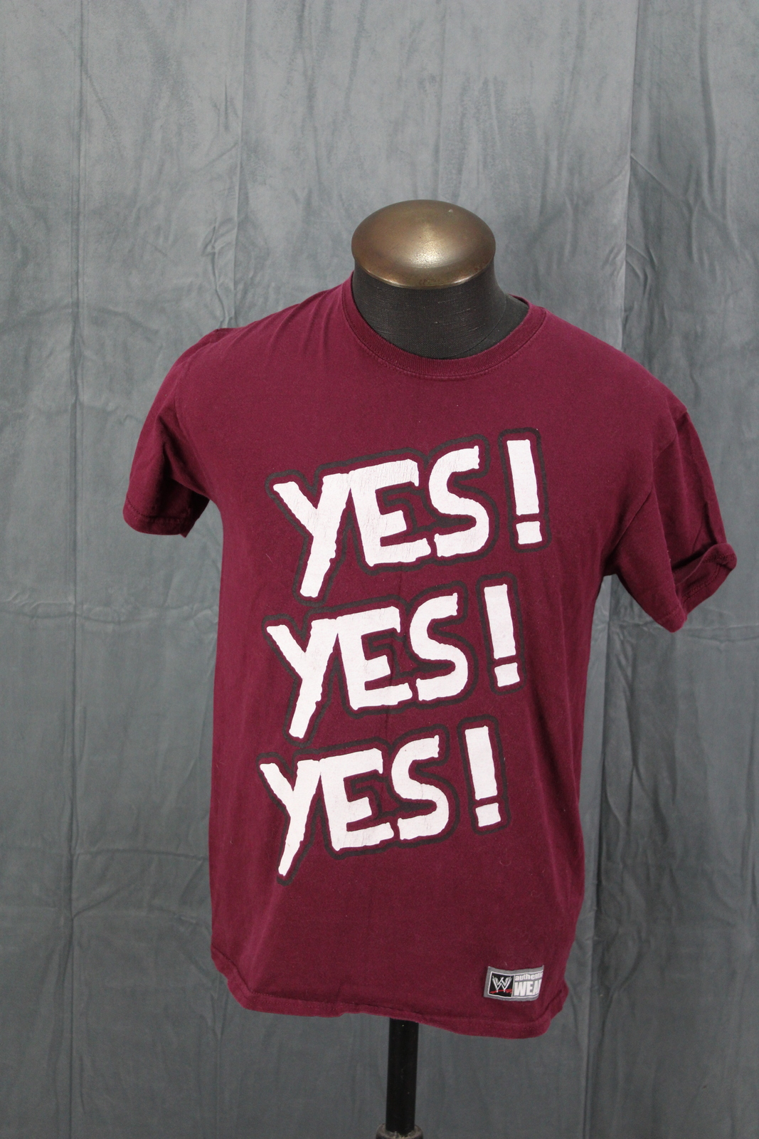 Up for sale is a retro wrestling shirt. It has a maroon base colour with Yes Yes Yes screened on the chest. The back of the shirt has Daniel Bryan and a wrestling ring screened on. What a great shirt do not miss out on it.