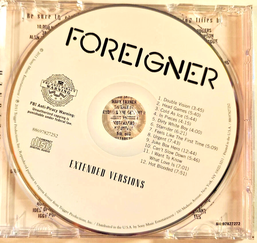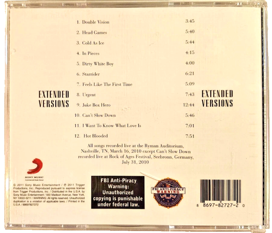 FOREIGNER Extended Versions CD 2011 Sony 88697827272